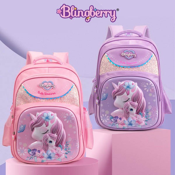 BLINGBERRY Tas Sekolah Anak SD Unicorn Glitter Cute Tas Ransel anak perempuan Glitter Polyester Waterproof Anti Air rans