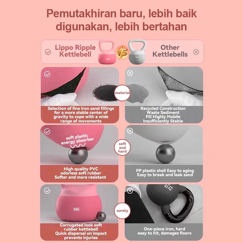 Dumbell Kettlebell Wanita 4–8kg Bahan Lunak, Ringan & Stylish Cocok Latihan di Rumah