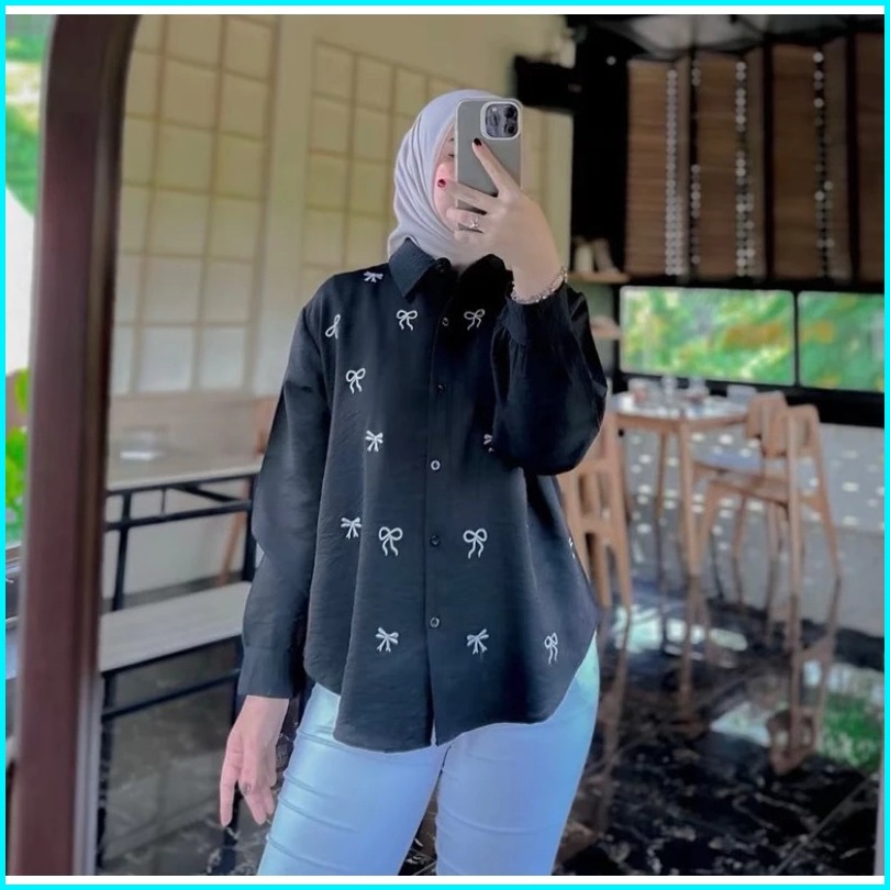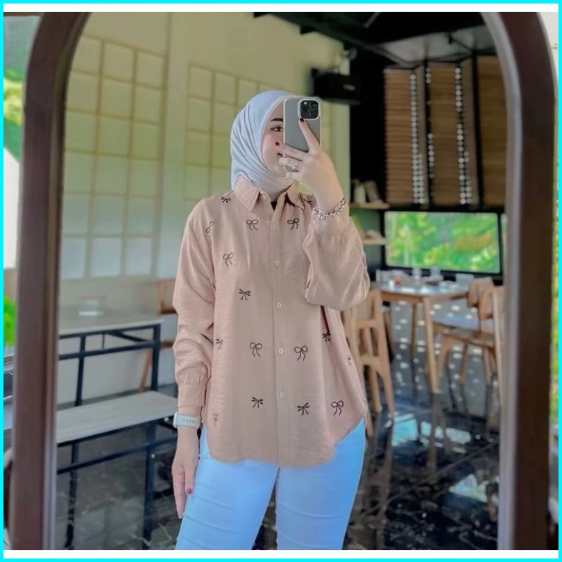 Kemeja Wanita Khansa Bordir Pita Oversize Trendy New Gratis Ongkir Kemeja Bordir Pita Remaja Dewasa