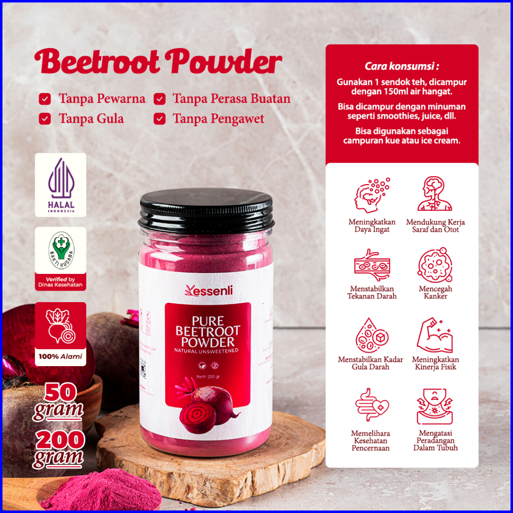 Essenli Pure Beetroot Powder Ekstrak Alami 50gr 200gr