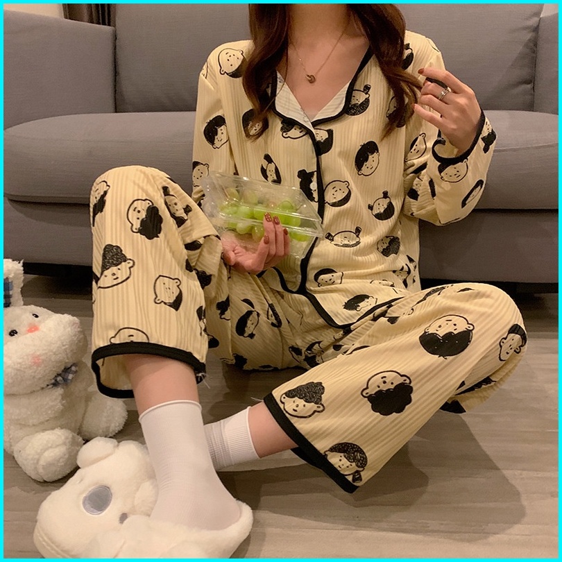 Lovera Baju Tidur Wanita Piyama Busui Kancing Depan Pp Lengan Panjang Celana Panjang