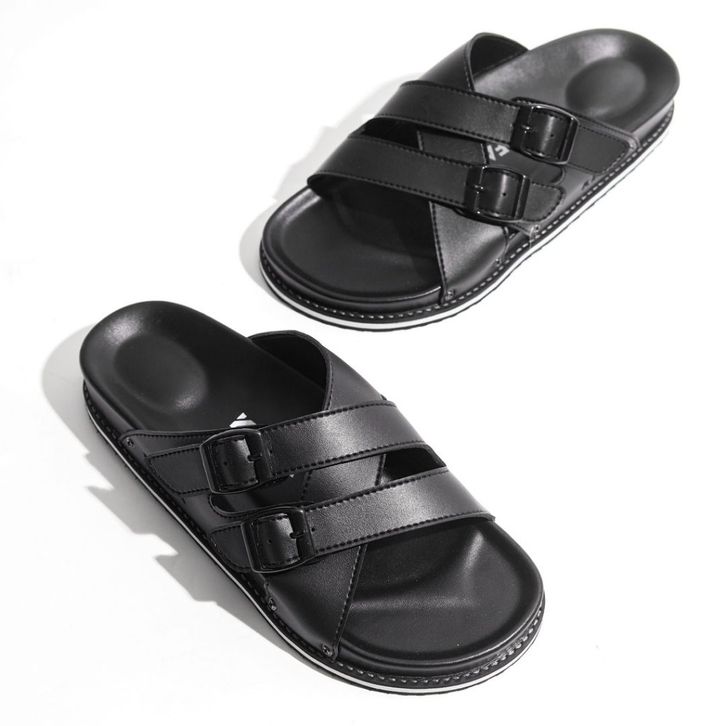 Kenfa - Carol Line Black Sandal Formal Casual Pria Wanita Kulit Slide Slop Distro Stylist