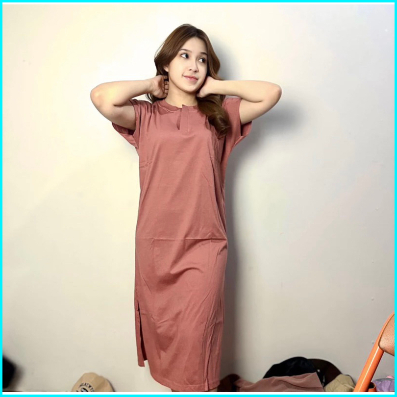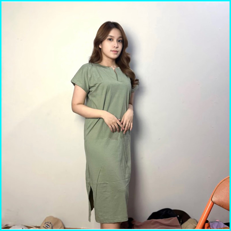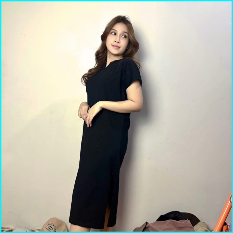 Dress V Neck Loose Midi Belah Samping Terbaru
