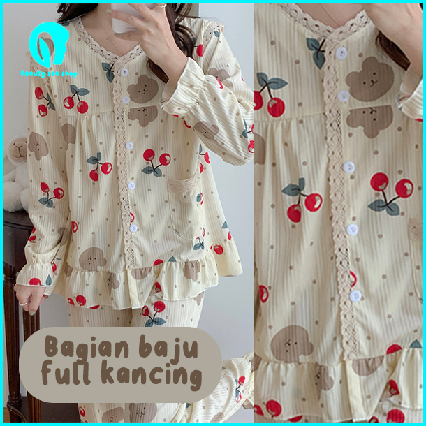 Bts-lx70 Beautyseashop Piyama Lengan Panjang Bahan Rib Korea Import