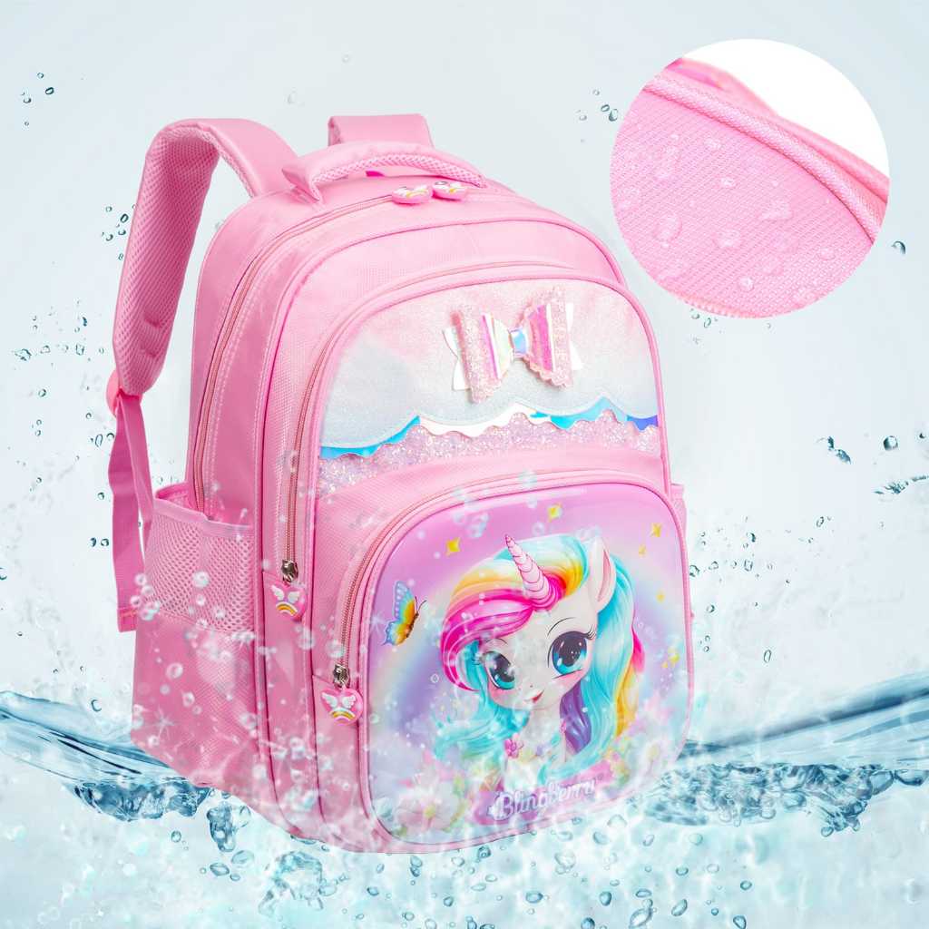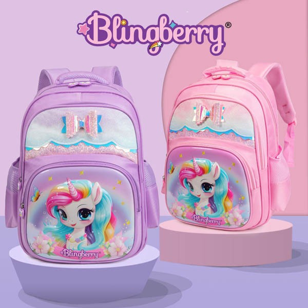 BLINGBERRY Tas Sekolah Anak SD Tas Ransel Unicorn 3D Timbul Glitter Tas Ransel anak perempuan Glitter Pita Polyester Wat