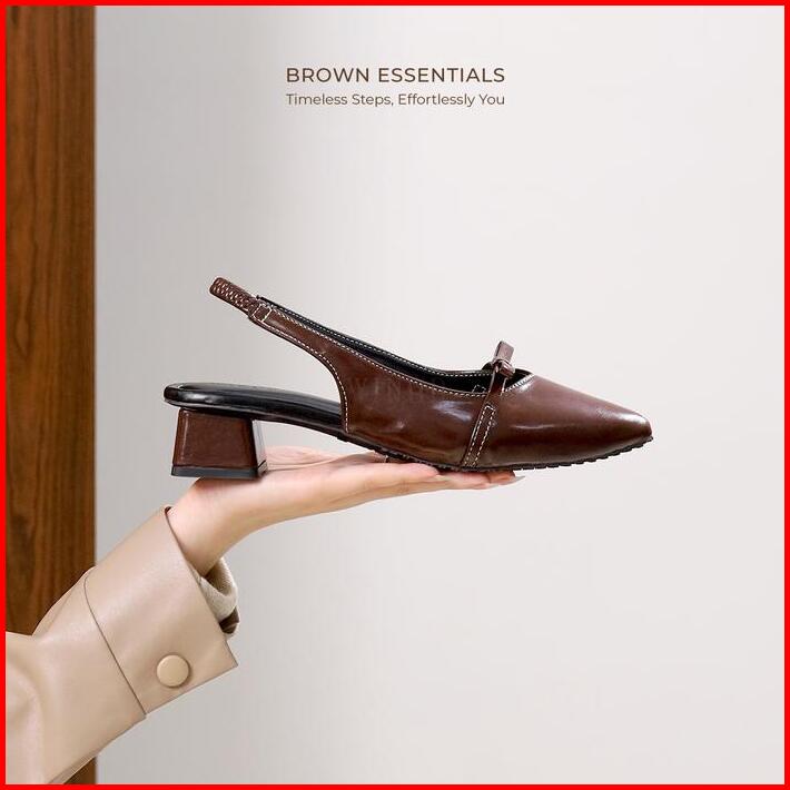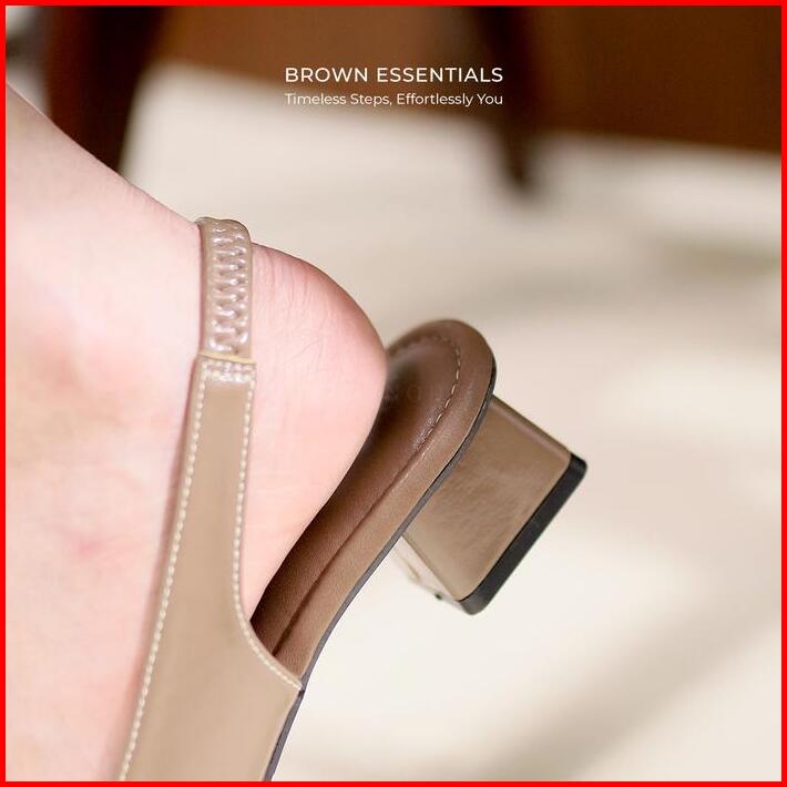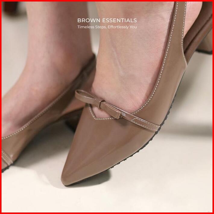 Winod Ivoria Heels Wanita Hak 3cm Sepatu Kerja Elegan Model Slingback Brown Essentials Daily
