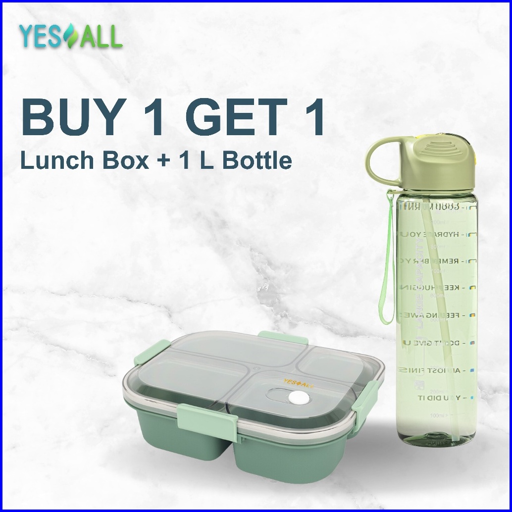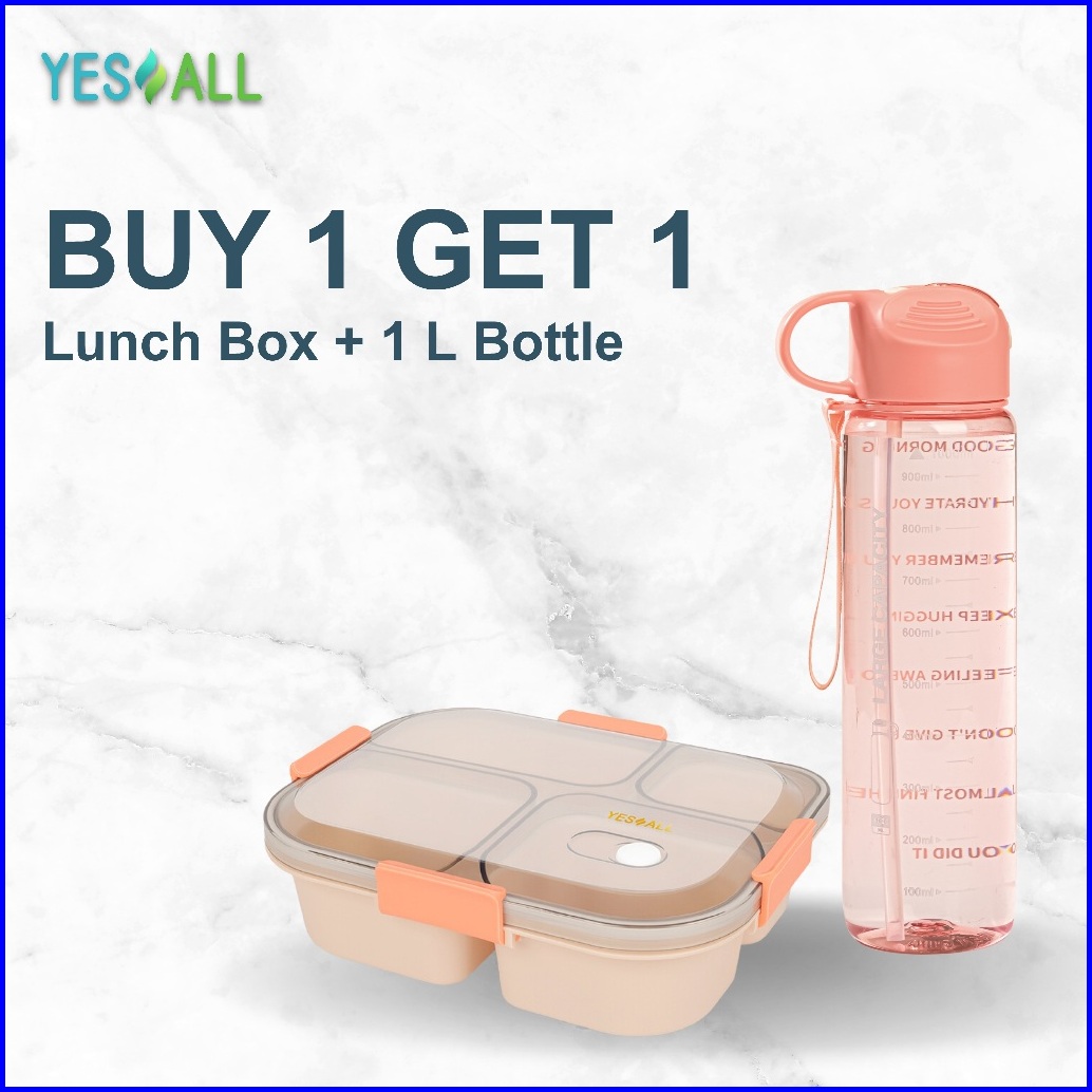 Buy1get1 Yesall Lunch Box Botol Minum Transparan 1000ml - Kotak Makan Tempat Bekal Wadah Makan Bontot Bento 4 Grid Bpa F