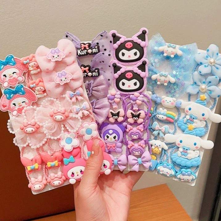KP 08 Set Ikat Rambut 18 Pcs / 9 Pasang Karakter Manis untuk Bayi Anak Perempuan sanrio