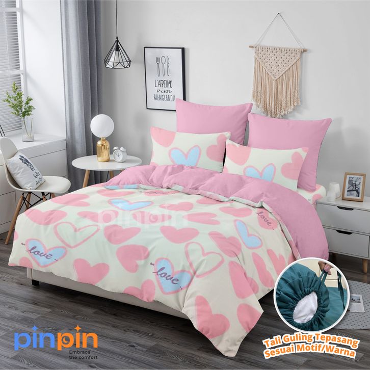 Bed Cover Set Sprei Valentine Pink Mix Baby Pink Ukuran Lengkap - Pinpin Bedcover