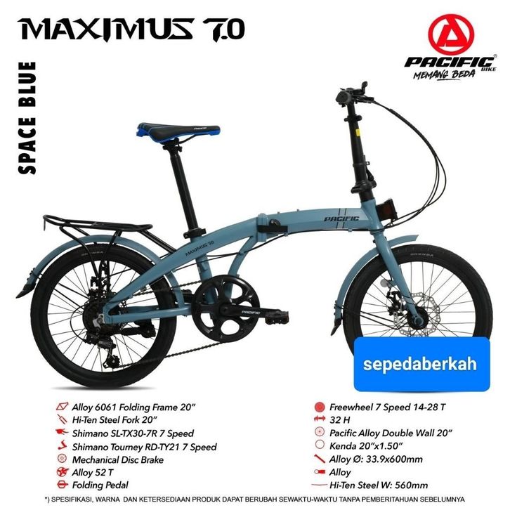 sepeda lipat 20 pacific Maximus 7.0 Alloy 1x7 speed rem cakram