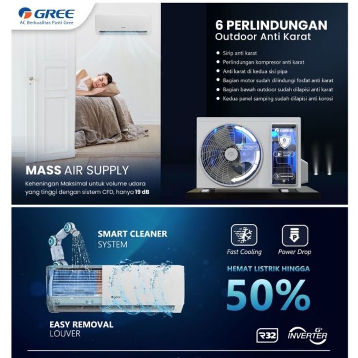 PROMO AC9rEE GWC09F5S 1PK INVERTER F5 SERIES GWC 09 F5S - HEMAT LISTRIK INVERTER LOW WATT ORIGINAL