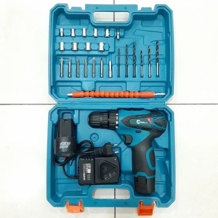 Mesin Bor Baterai / Batre 12 V impact drill 1mm electric free acsesoris dan Toolset Toolkit Toolbox