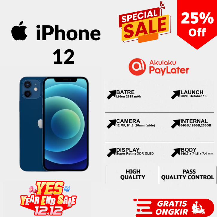 iPhone 12 Second Original Fullset Mulus Like New IP 12 64GB 128GB 256GB All Operator Normal Good Condition Bergaransi