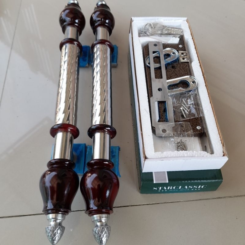 Fullset Lengkap Pegangan handel pintu rumah 45cm Mahoni