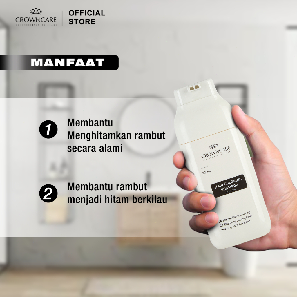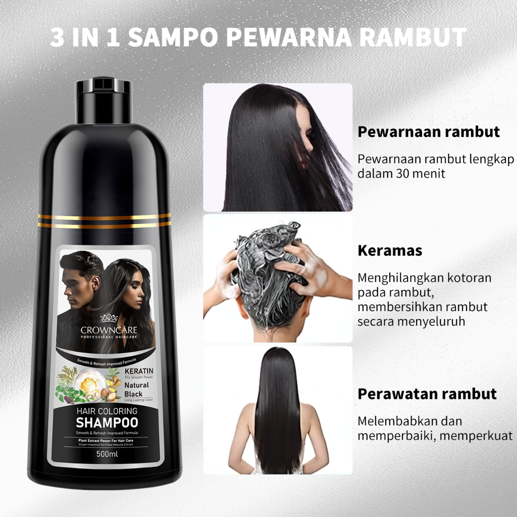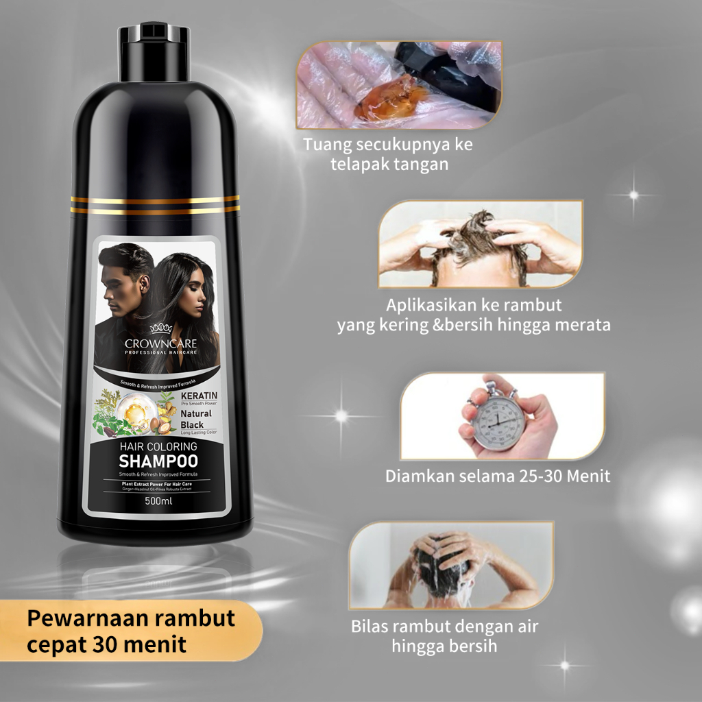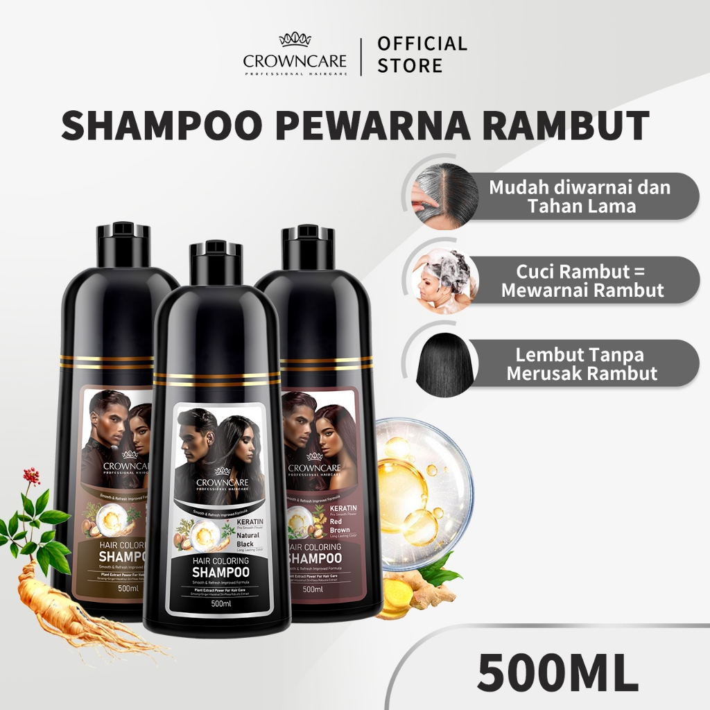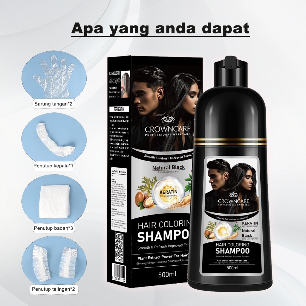 CrownCare Hair Coloring Shampo Pewarna Rambut 500ML- Shampoo Uban Herbal Tanpa Amonia, Pewarnaan Instan untuk Hasil Alam