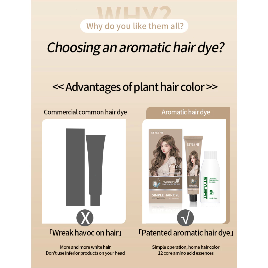 【Ready Stock】6 Warn Pewarna Rambut Milk Tea Brown Cat Rambut Ash Brown Ash Grey Hair Color Pewarna Tanpa Bleaching Herb