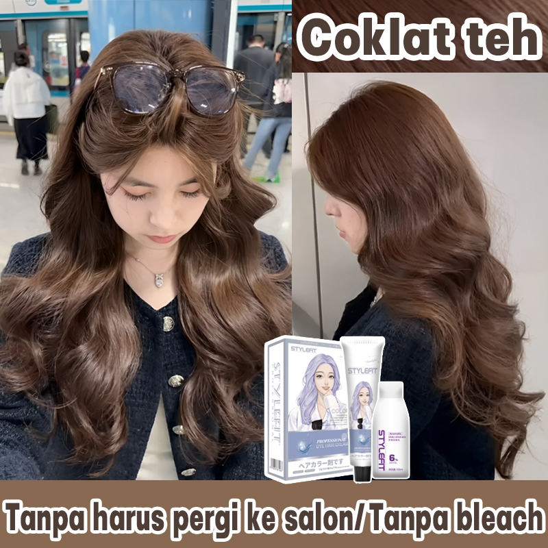[Menutup uban]STYLE FIT Hair Color Coklat teh,mencerahkan kulit,Tanpa bleach,mudah diwarnai,Tanaman alami,warna tetap ta