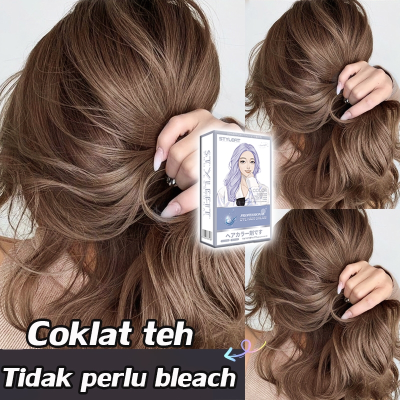 Cat Rambut Coklat Teh 210ml - Warna Natural Trendy 2025! Tutup Uban 100% Tanpa Bleach, Formula Argan Oil + Vitamin E, Ta