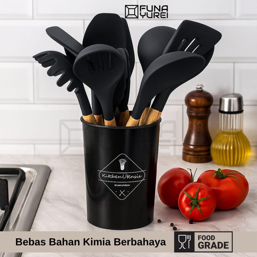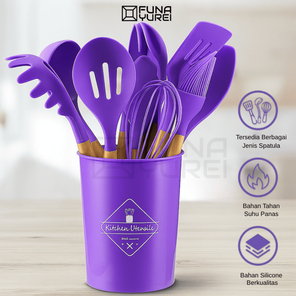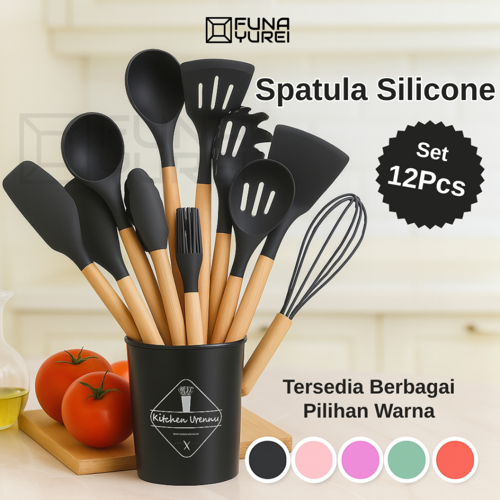 FUNAYUREI B4 Set Alat Dapur Silikon 12 in 1 – Ideal untuk Menggoreng, Menumis, dan Memasak Setiap Hari