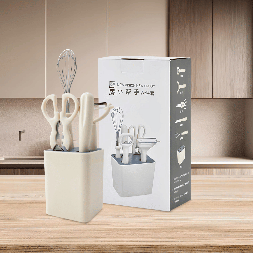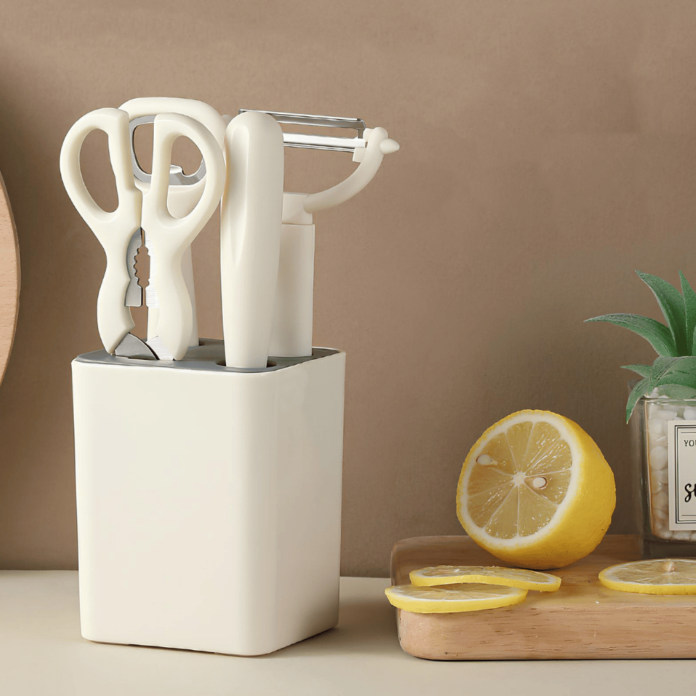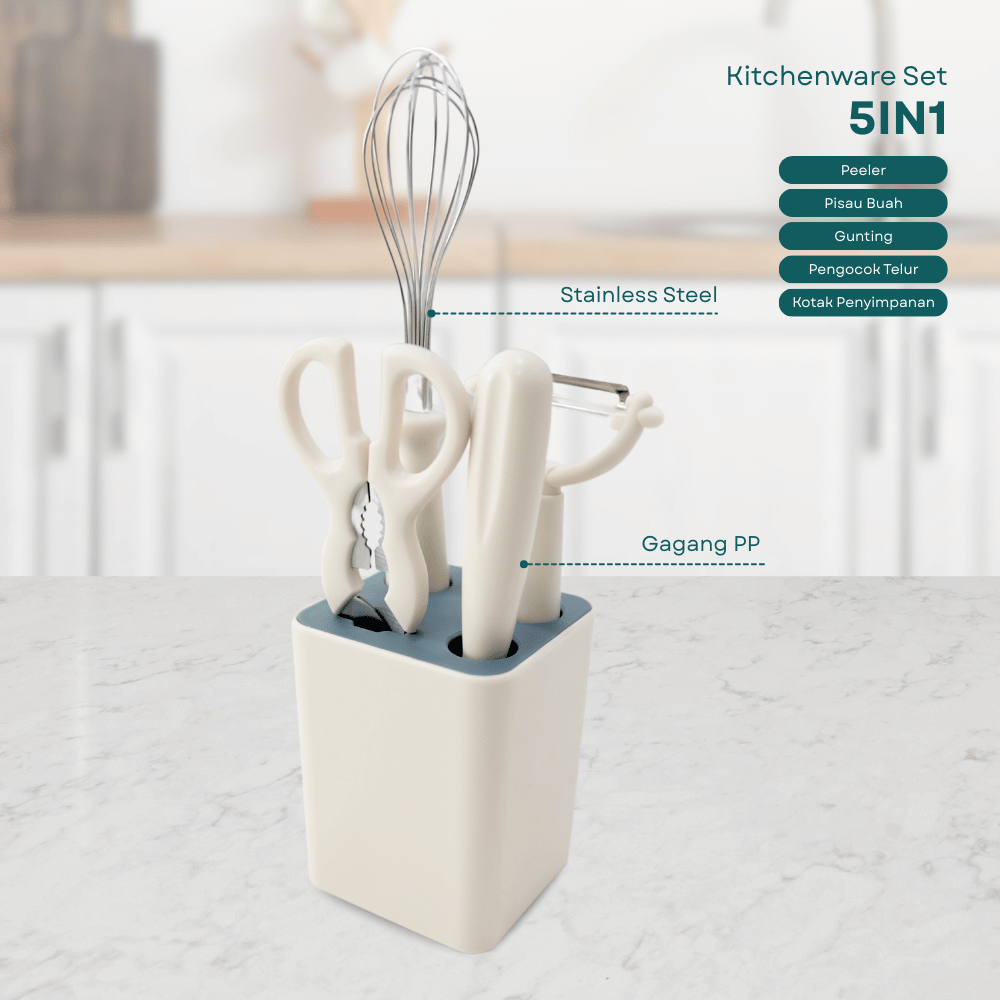 Umikee Kitchenware Set 5 in 1 Perlengkapan Dapur Pisau Peeler Gunting Pengocok Telur dan Wadah Penyimpanan