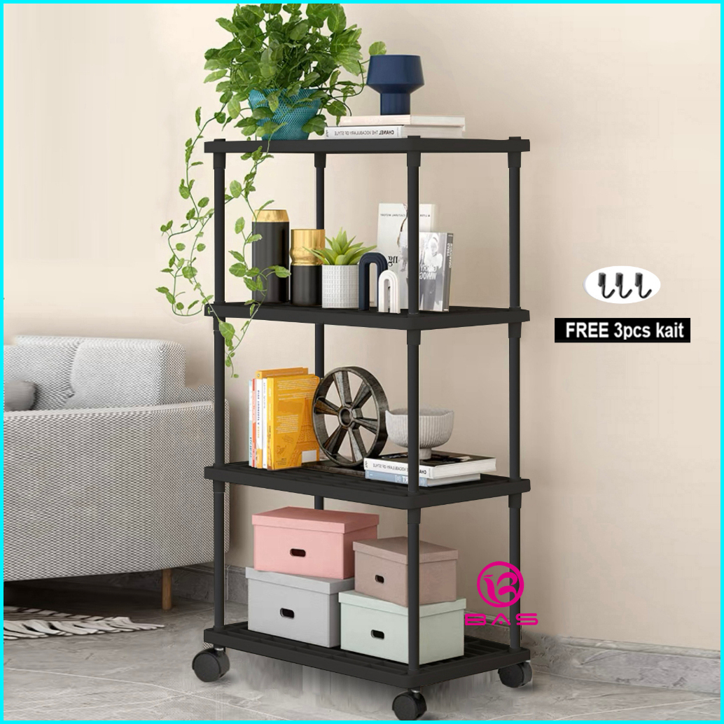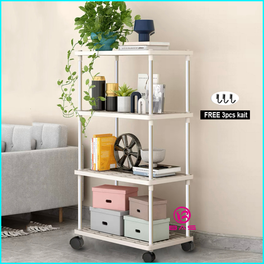 Bas Rak Susun Serbaguna Rak Dapur Plastik Rak Kamar Mandi 4 Tingkat Free 3 Cantolan Dengan Roda