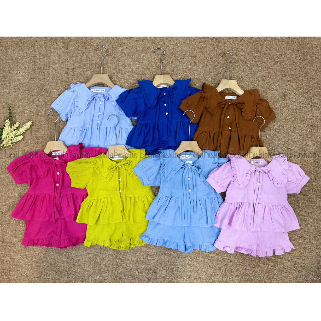 [ EexitoFashion ] Set Cheryl Kids 1 - 3 Tahun | setelan anak perempuan Peterpan collar | set Linen anak | fashion anak |