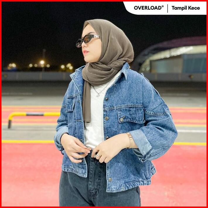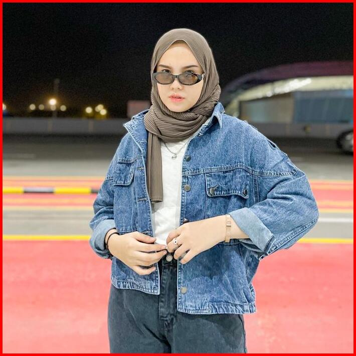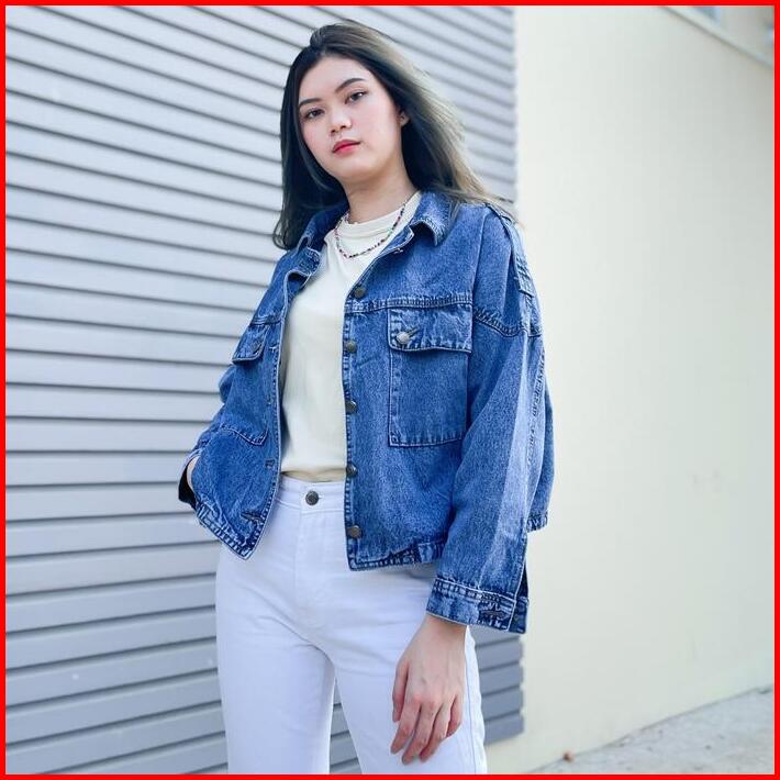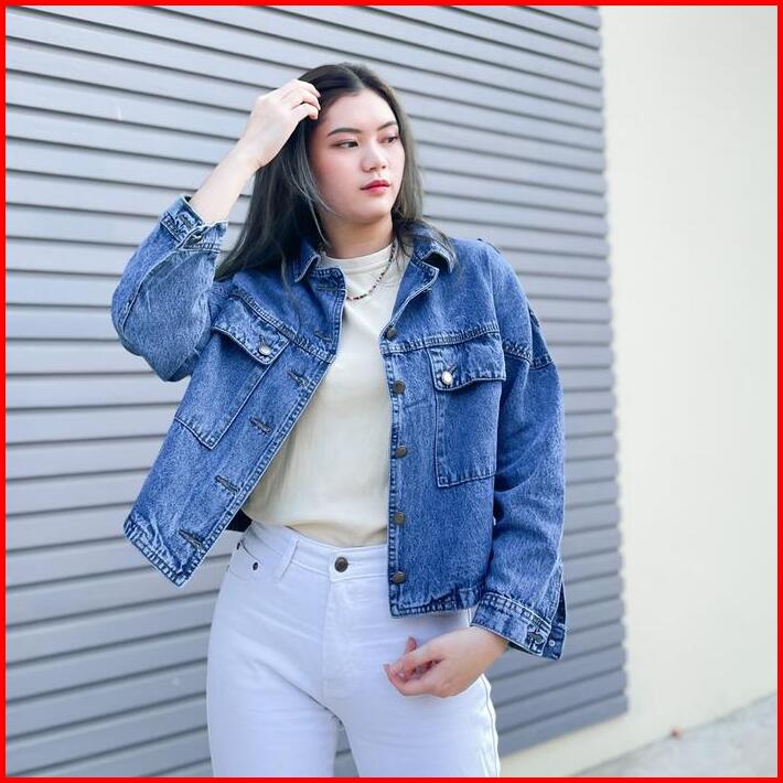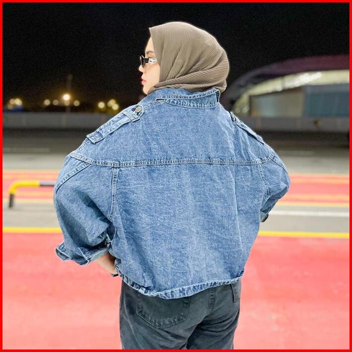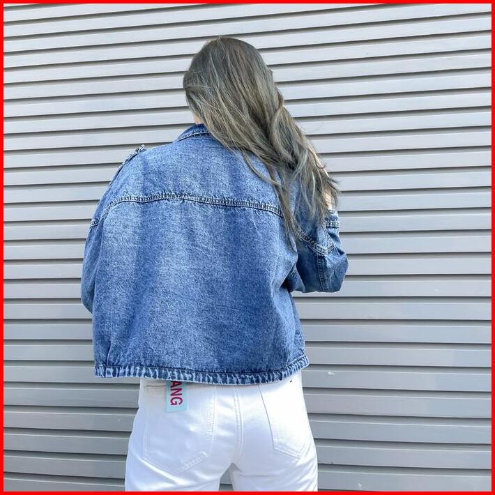 Jiniso Jaket Crop Jeans Oversize Blue Acid