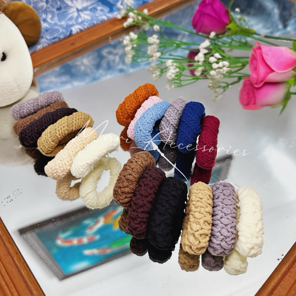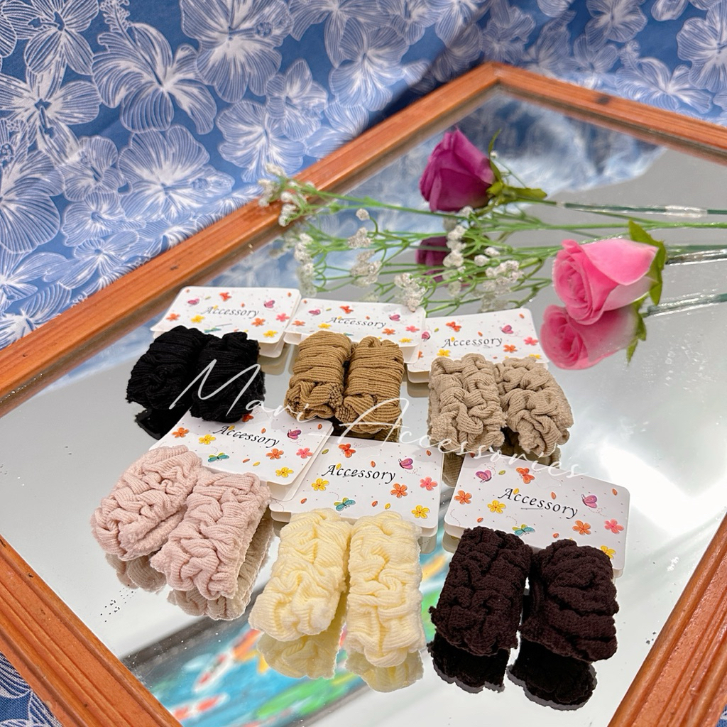 Scrunchie Ikat Rambut Kain Rajut Warna-Warni Isi 12 card | Ikat Rambut Korea Lucu