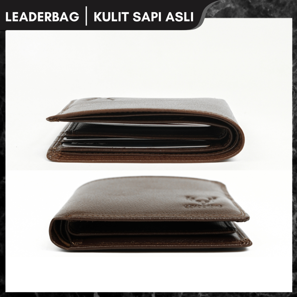 Leaderbag Dompet Pendek Pria Kulit Sapi Asli Warna Coklat Premium Walet Lipat Branded Elegan Terbaru