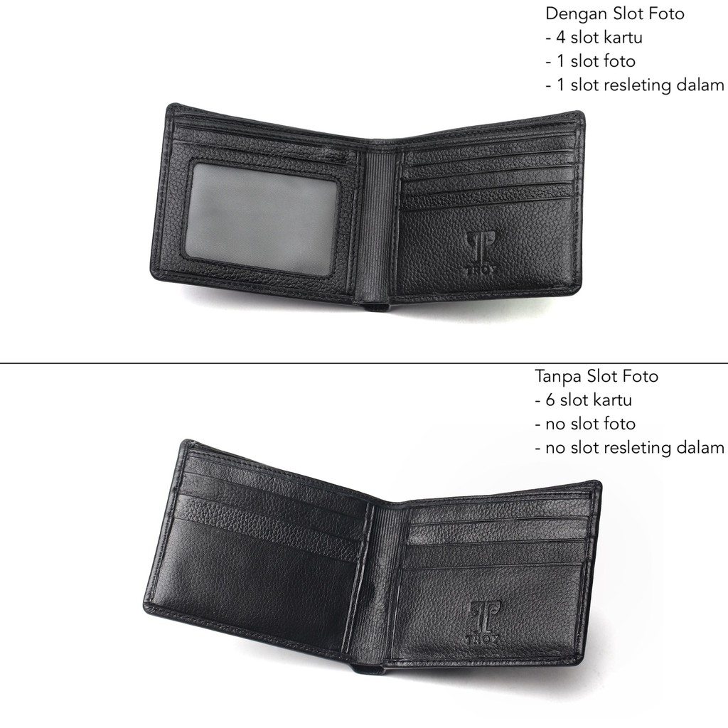 TROY Dompet Pria Dompet Kulit Sapi Asli Tipis Slim Hitam Polos Minimalis Mewah el Lipat Toma