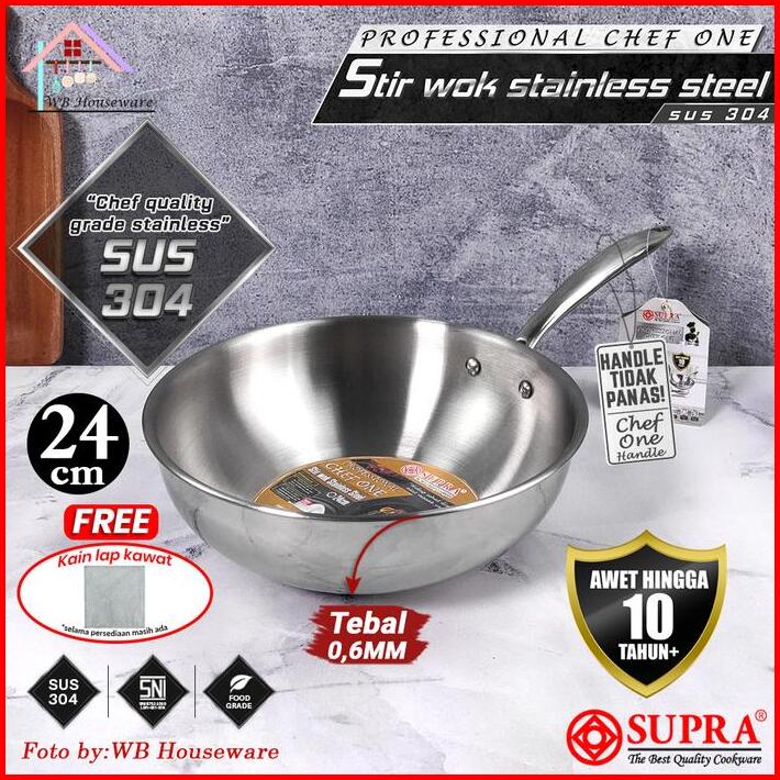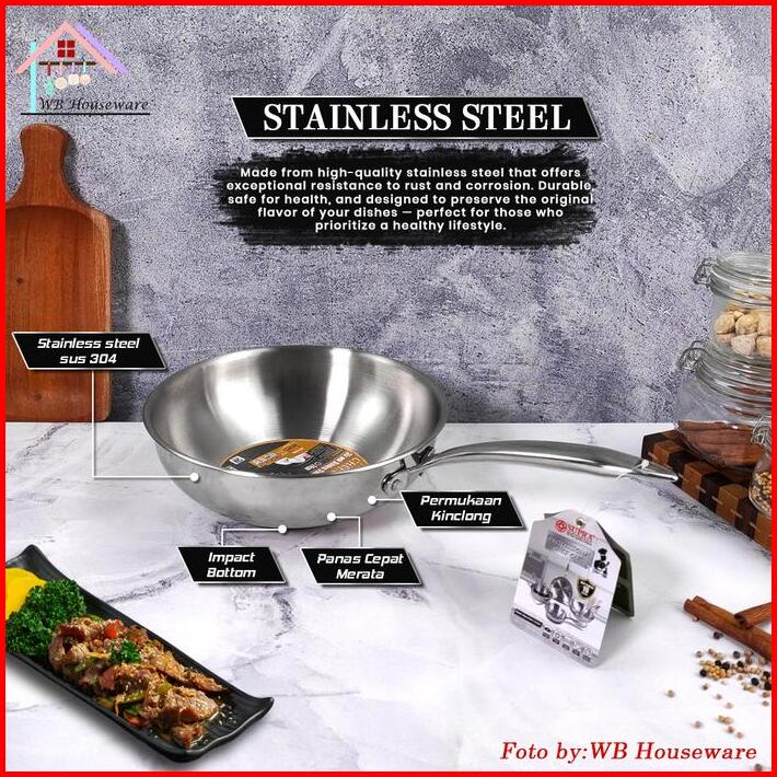 New Panci Stir Wok 24cm Chef One Series Stainless Steel Sus 304 Penggorengan Wajan Gagang Masak