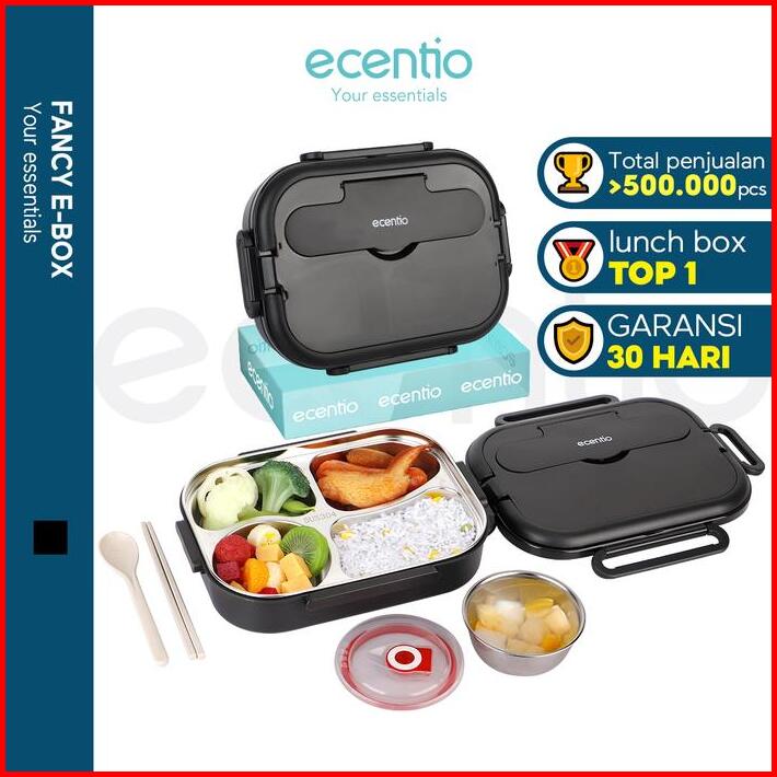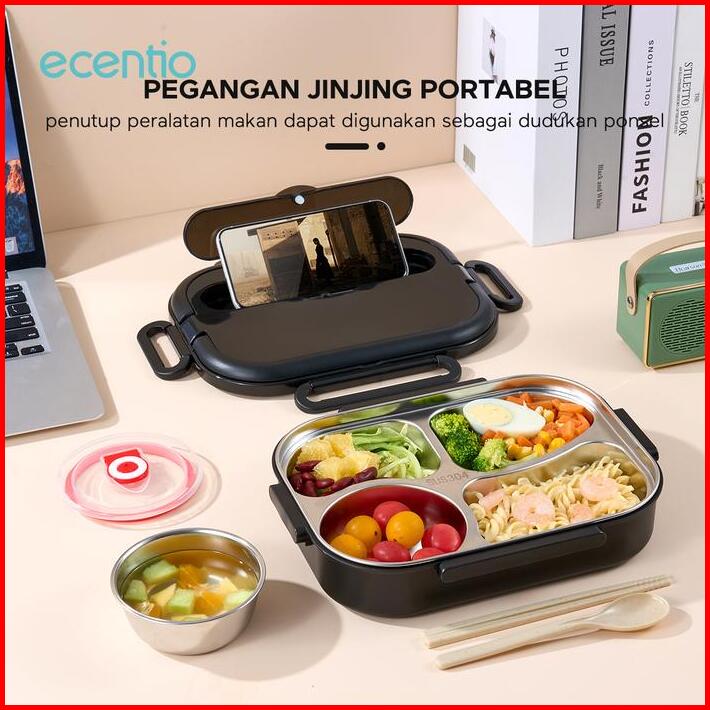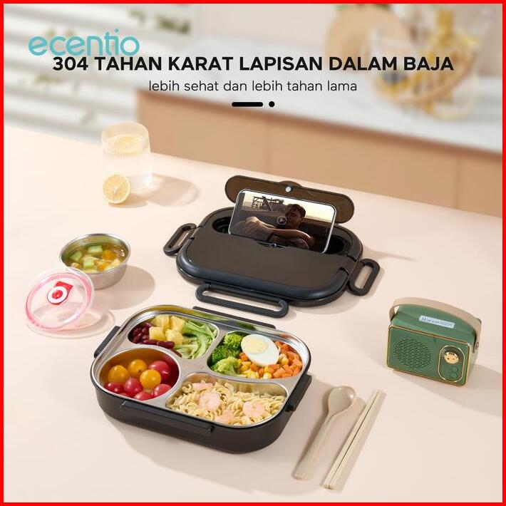 Ecentio 1l Kotak Makan Stainless 304 Tempat Makan Lunch Box 4sekat