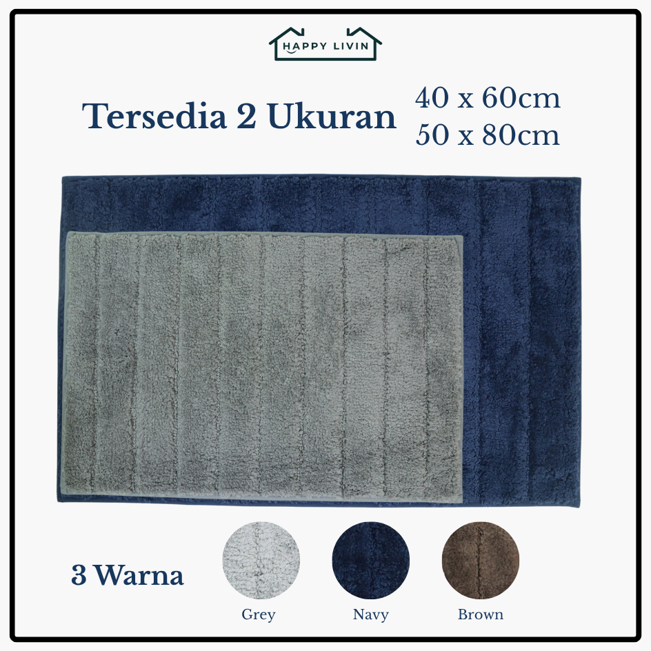 Happy Livin - Premium Floor Mat 40x60cm Keset Kaki Anti Slip Serap Air Keset Bulu Garis Polos