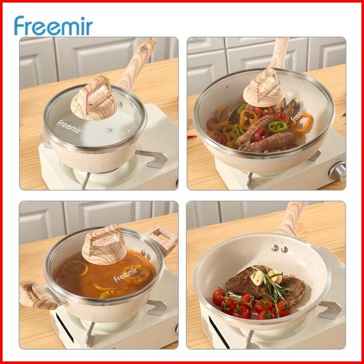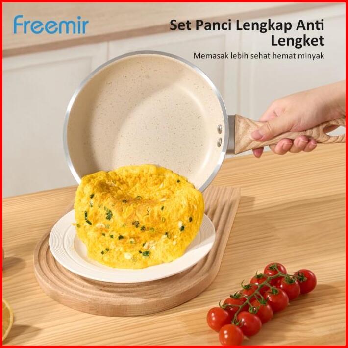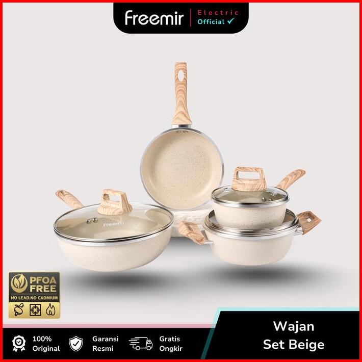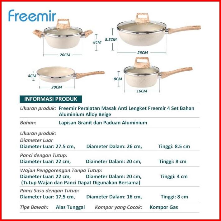 Sale Freemir Beige Set 4 Pcs Wajan Ukuran 26 20 20 16 Dengan Tutup Kaca Cookware Multifungsi