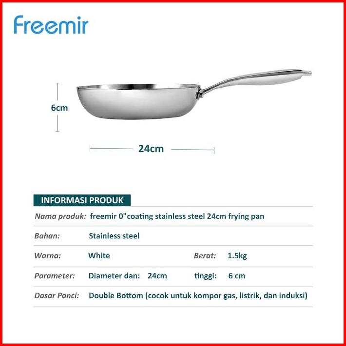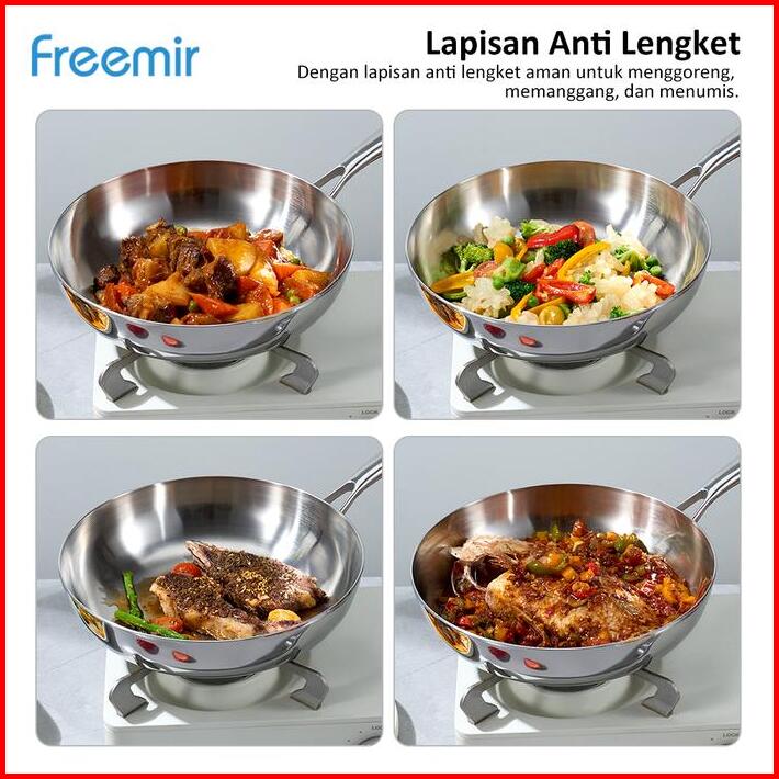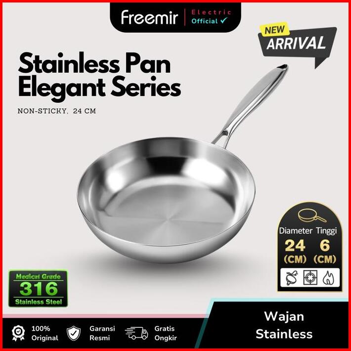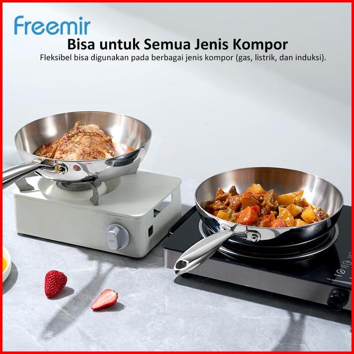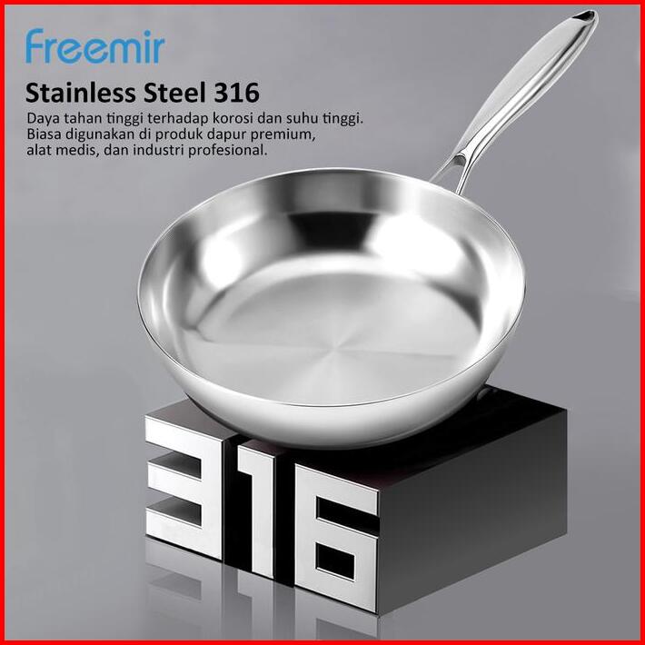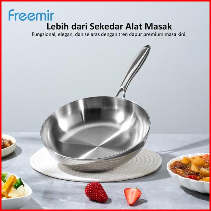 New Freemir Wajan Penggorengan 24 Cm Stainless Steel 316 Elegant Masak Sehat Anti Lengket