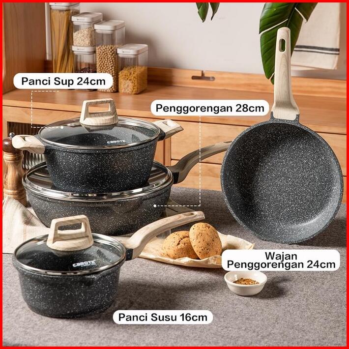 Carote Ew Wajan Panci 4pcs Set Granit Anti Lengket Essential Woody