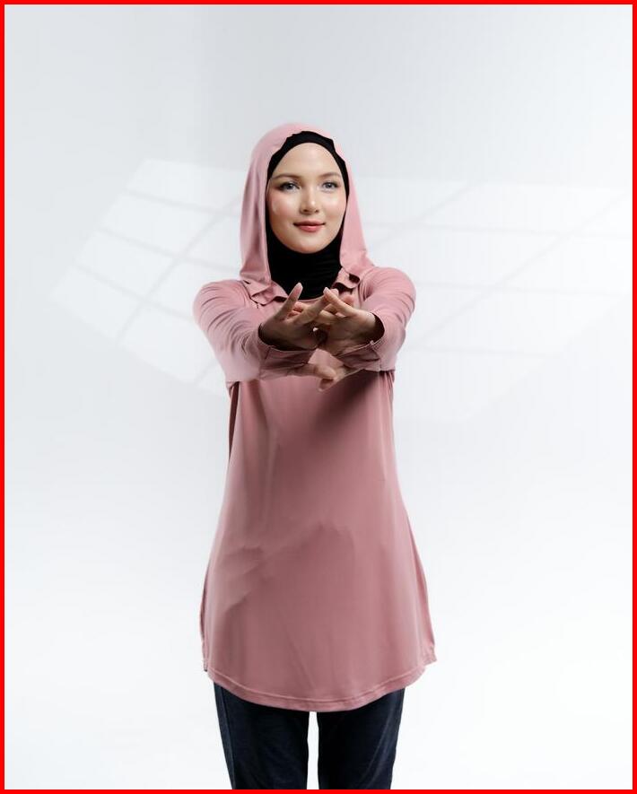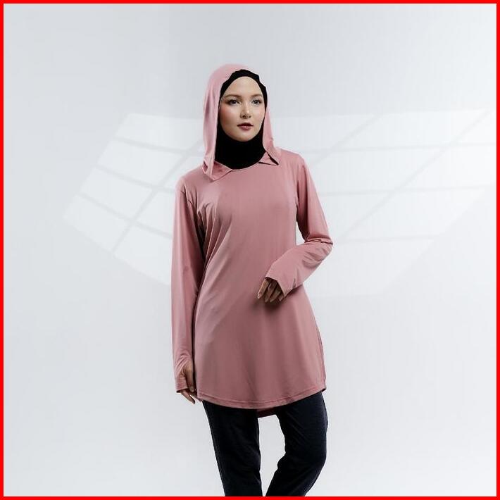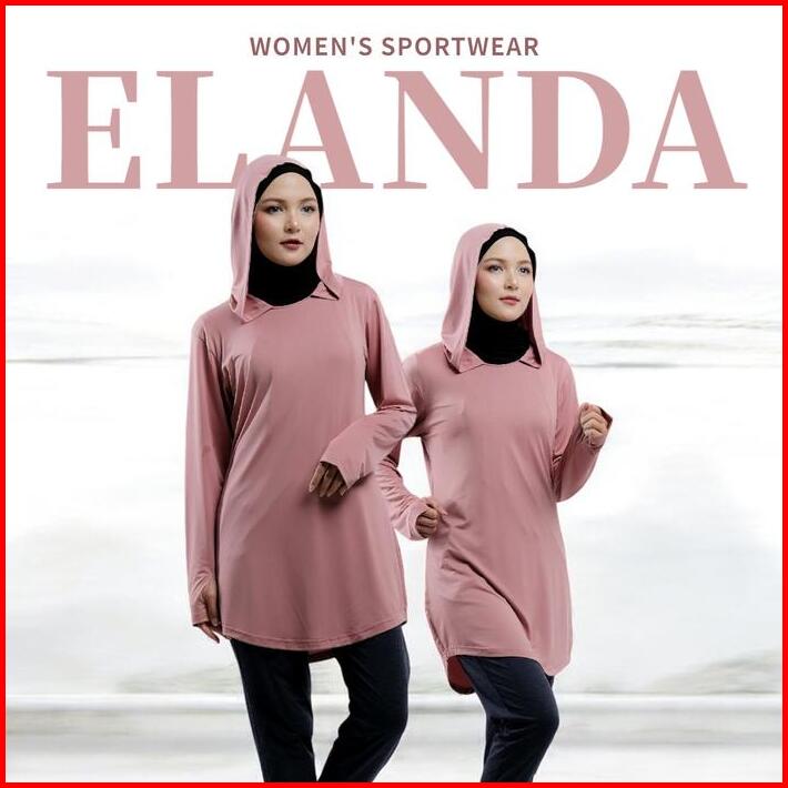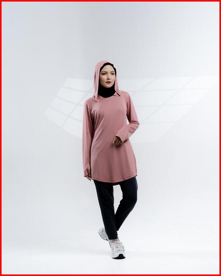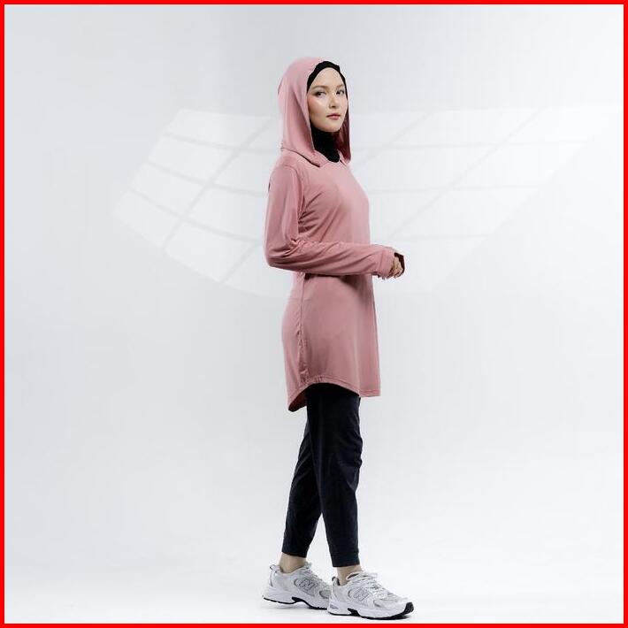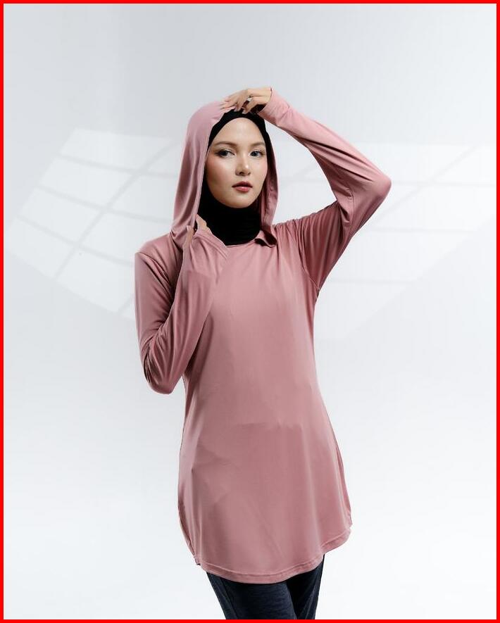 Baju Olahraga Muslim Wanita Muslimah Elanda Activewear Atasan Lari Running Lengan Panjang Polos Polyester Hoodie Hitam