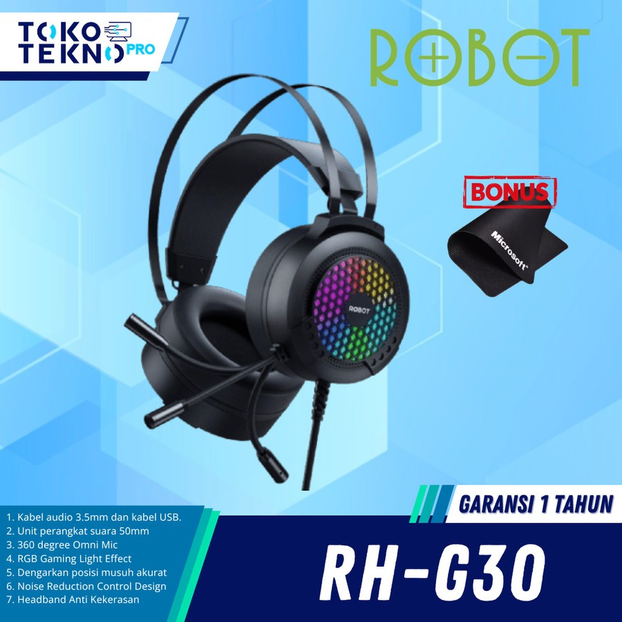 Robot RHG30 / RH G30 / RH-G30 Headphone Gaming Mic 3.5mm USB RGB Light Wired Headset