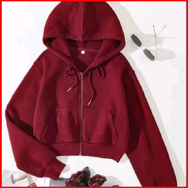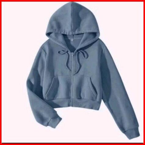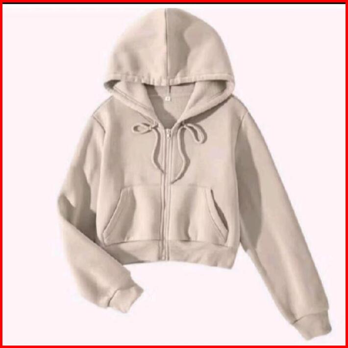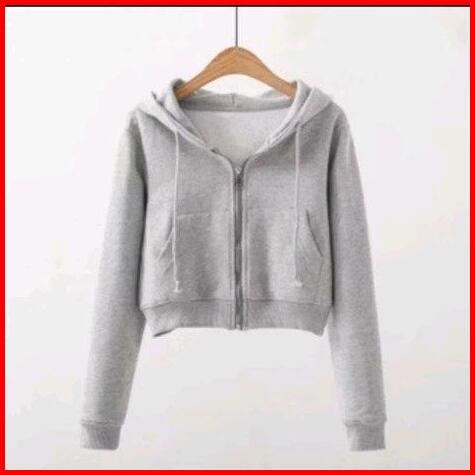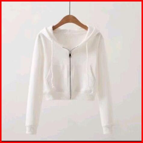 Sweater Hoodie Crop Top Zipper Lengan Panjang Wanita Premium Bahan Tebal