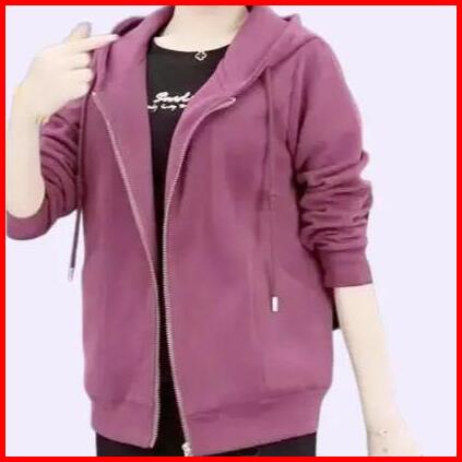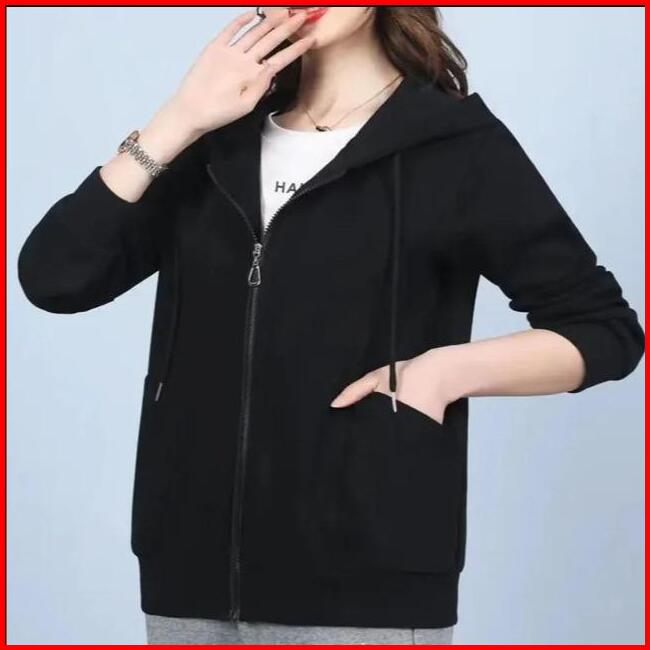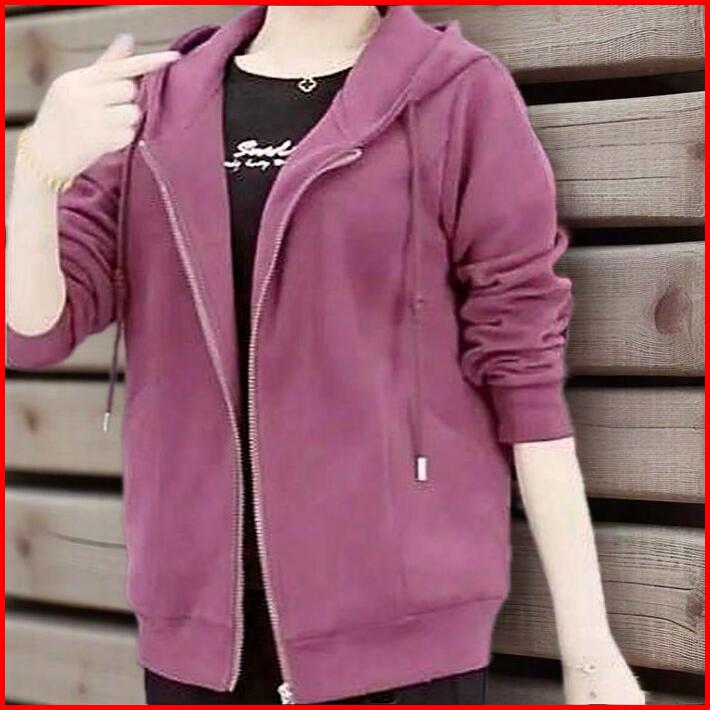 Sweater Hoodie Zipper Wanita Basic Premium Bahan Fleece Tebal Lembut Gramasi 280 Kerah Nyaman