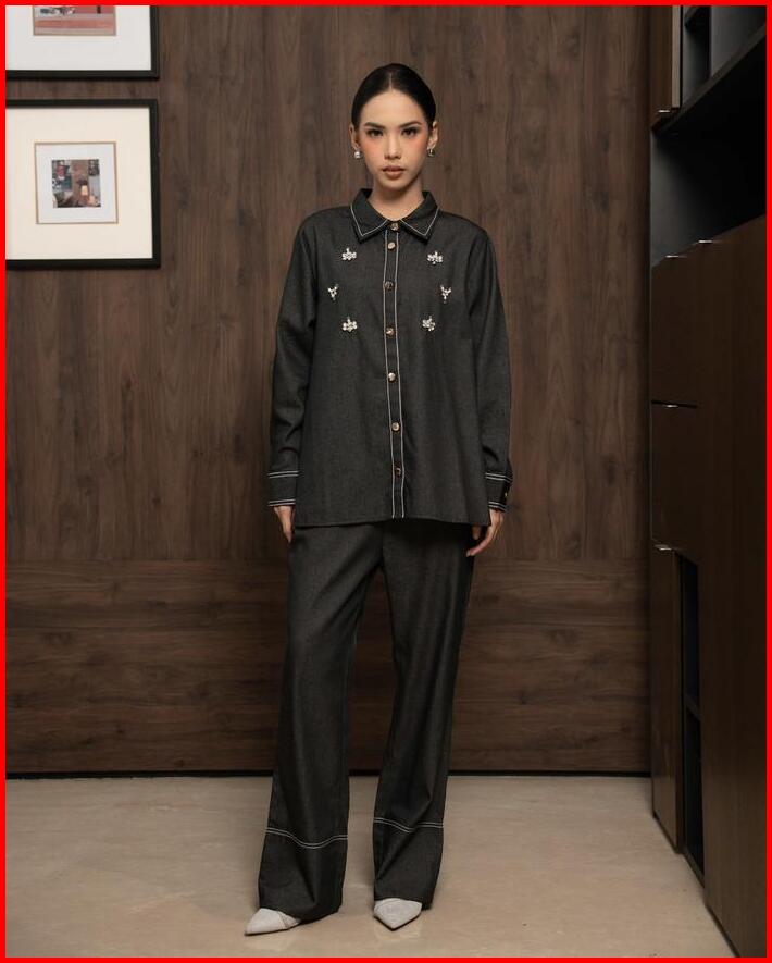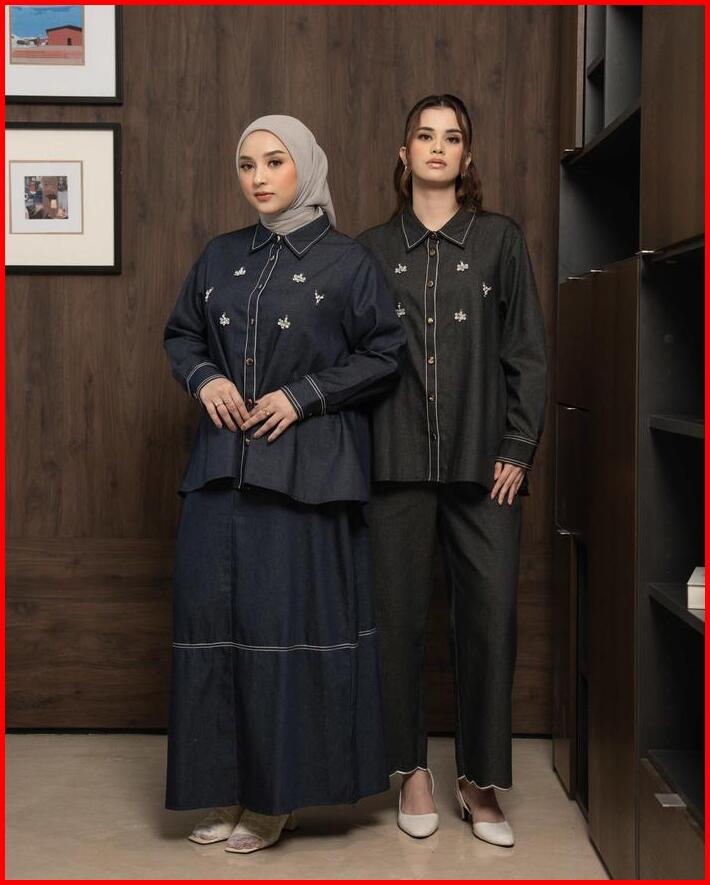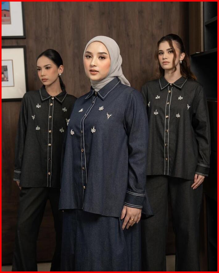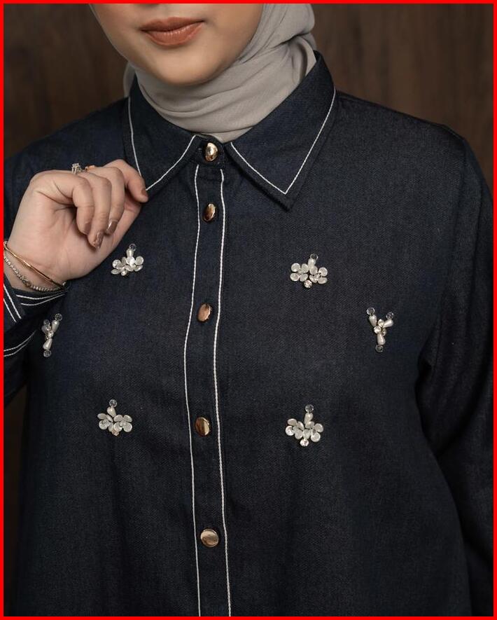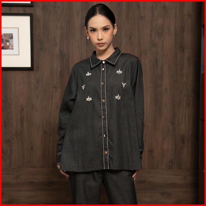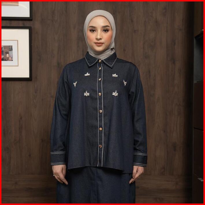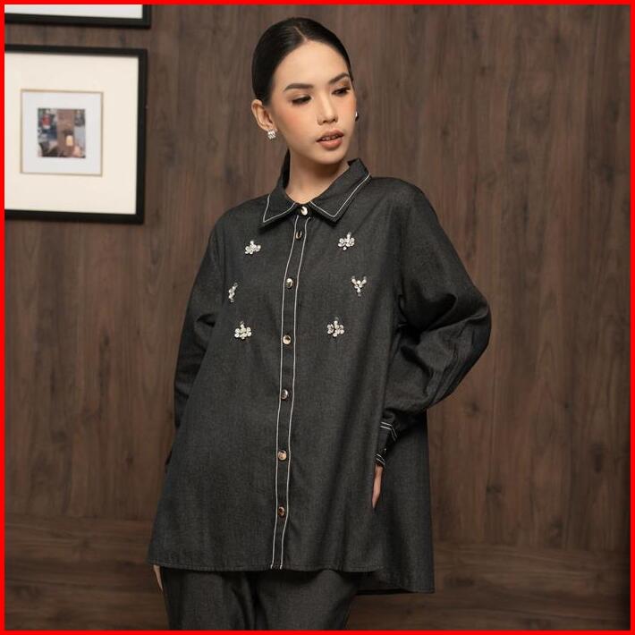 Mayoutfit X Dinan Fajrina Vanisha Shirt Kemeja Denim Wanita Basic Aksen Payet Beads