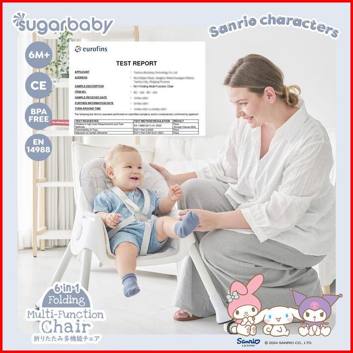 Sugar Baby 6-in-1 Folding Multi-function Chair Sanrio Collection Kursi Bayi Kursi Anak Kursi Makan Anak Kursi Mpasi Baby