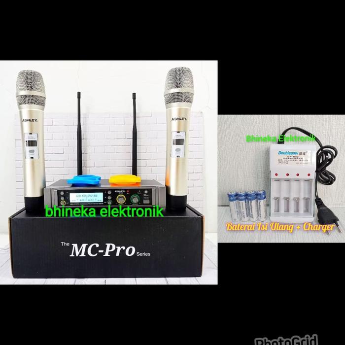 Mic Wireless Ashley Mc Pro 2bh mic pegang + fitur Anti Feedback Mic Karaoke