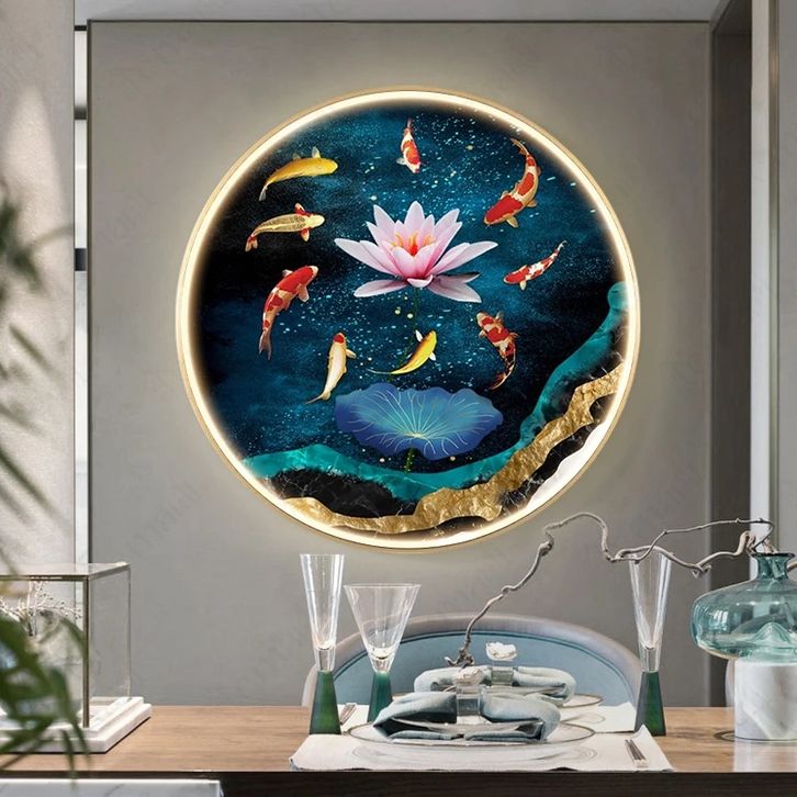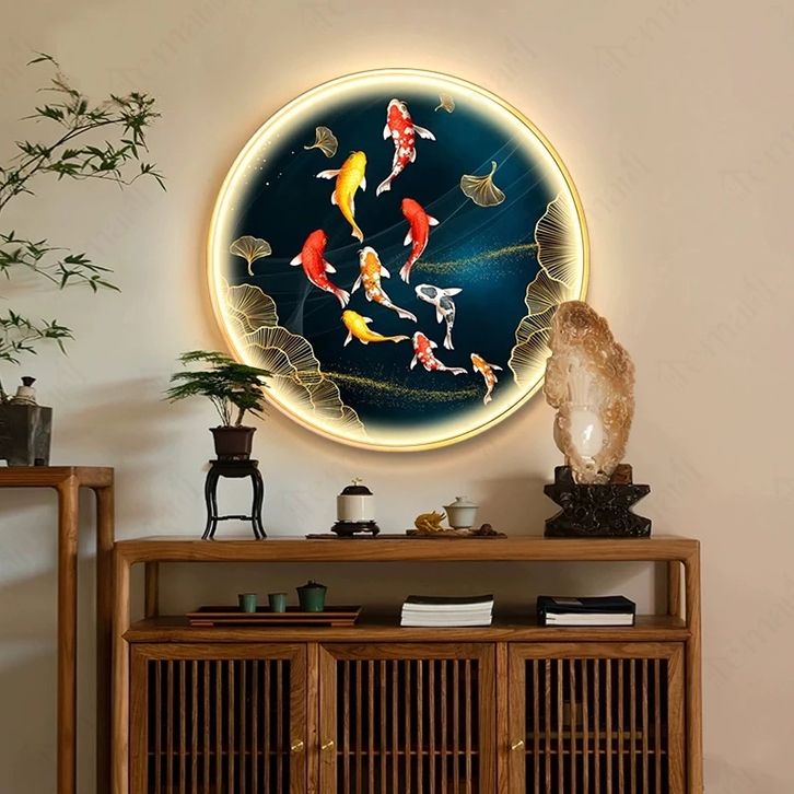 [Star] Lampu Hias Dinding Mewah - Lukisan Koi Minimalis 80cm dengan Remote [Dekorasi Ruang Tamu Aesthetic] Lampu Plafon