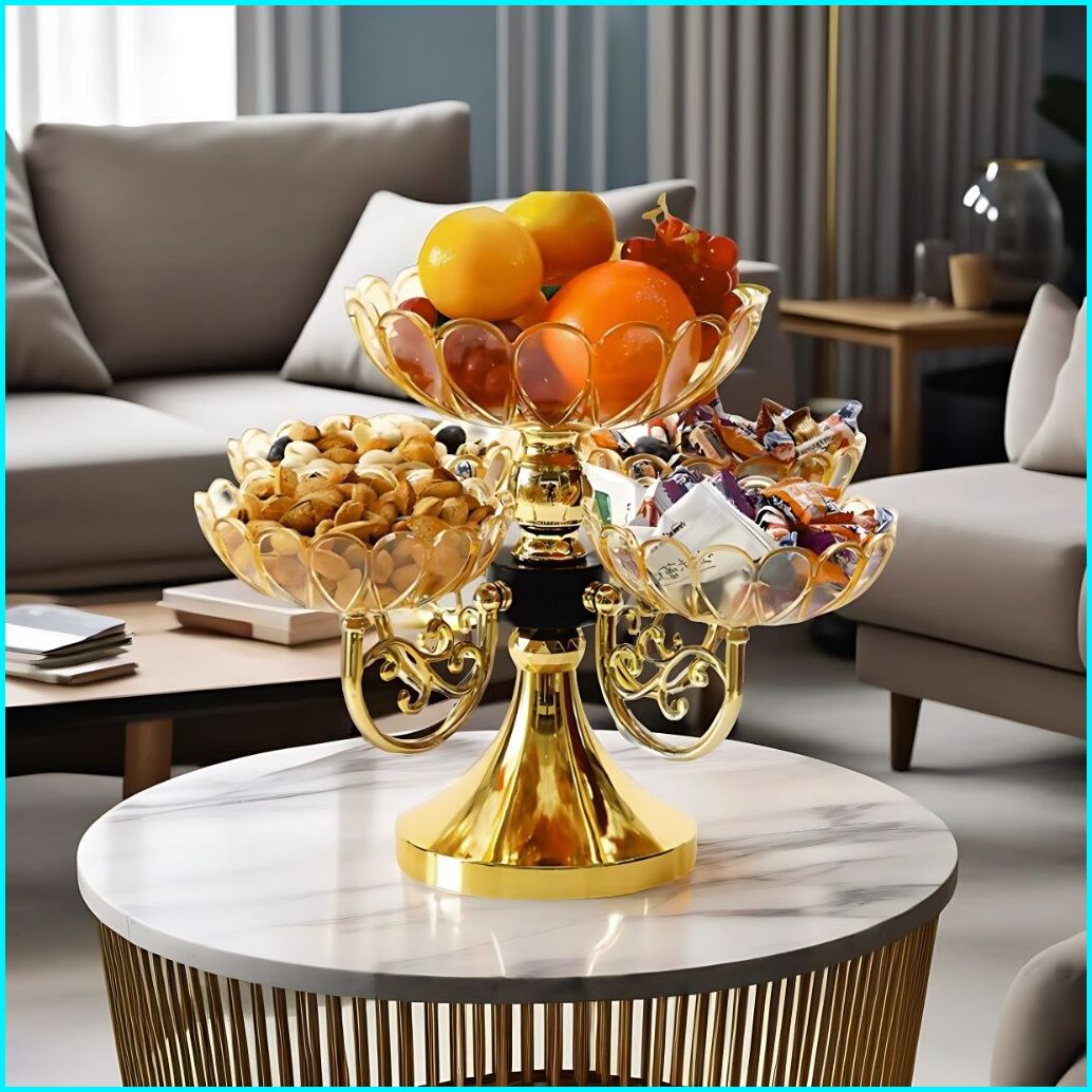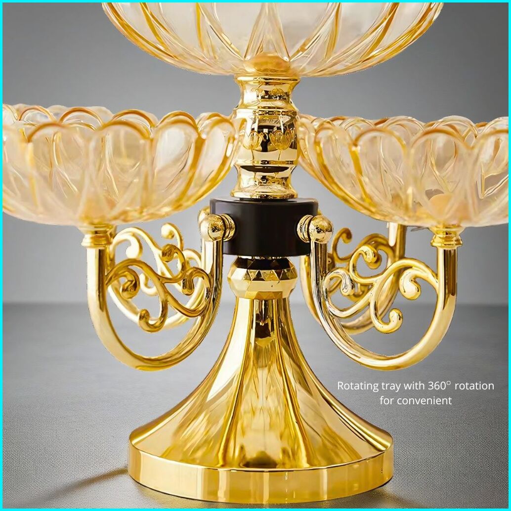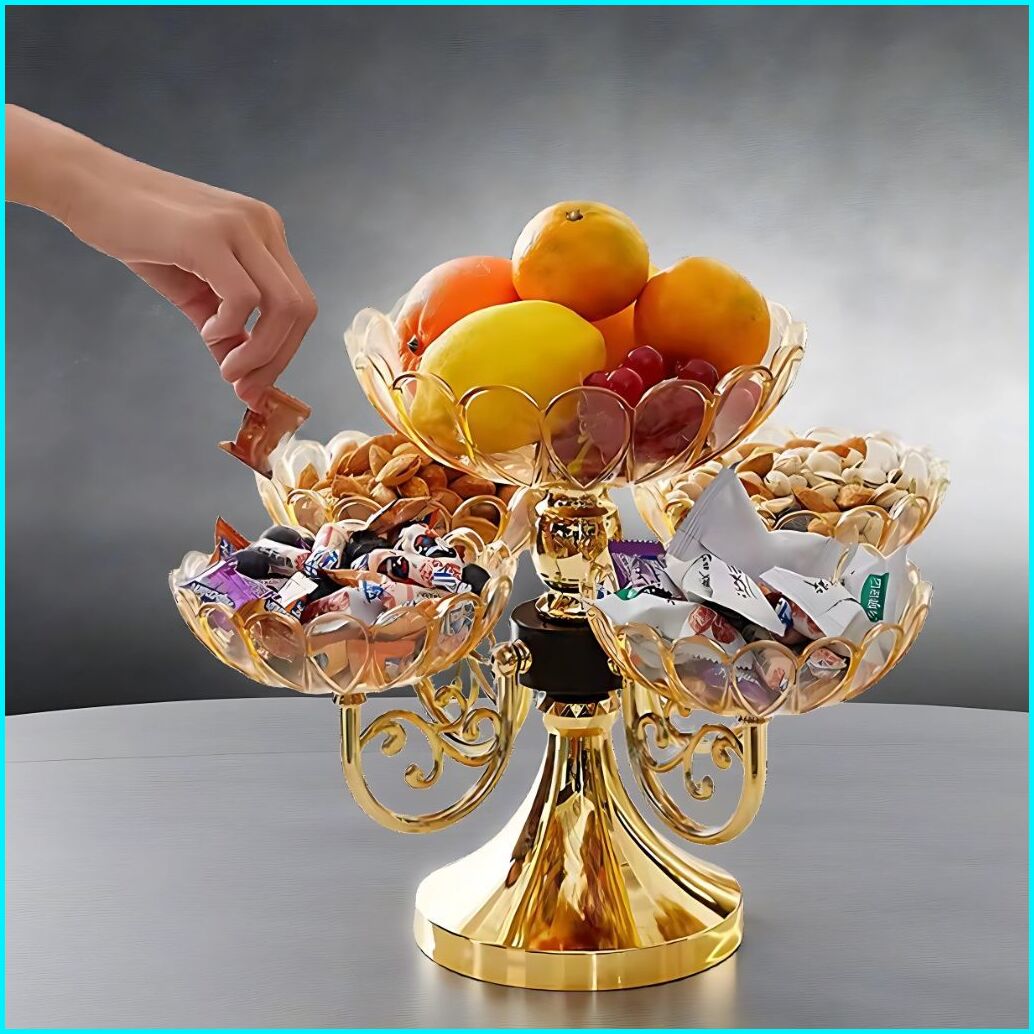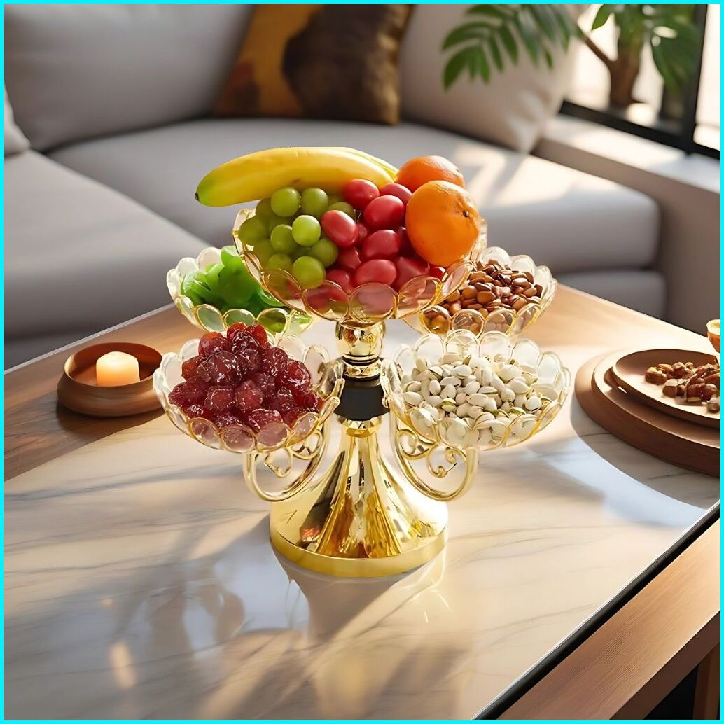 Wadah Buah 2 Tingkat 5in1 Estetik Piring Cemilan Bisa Putar 360 Derajat Tempat Permen Dekorasi Kristal Hiasan Aesthetic