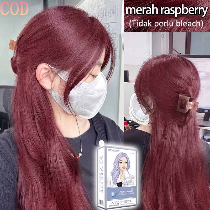 【Gratis ongkir 】STYLE FIT cat rambut merah raspberry*200ml Tidak perlu bleach, Mencerahkan kulit, menutupi uban(cat ramb