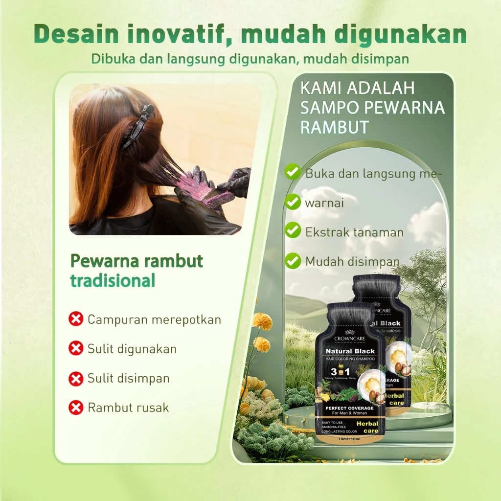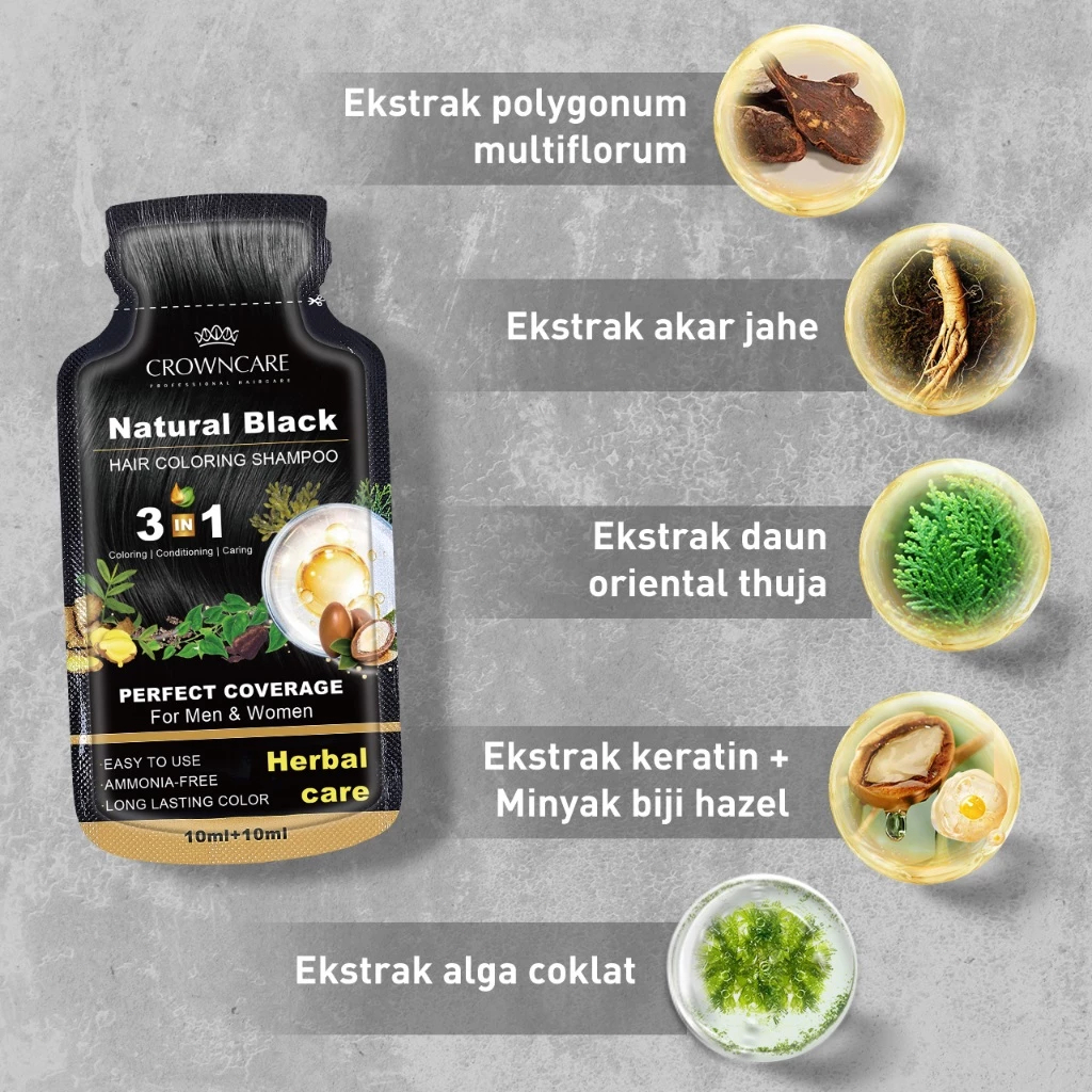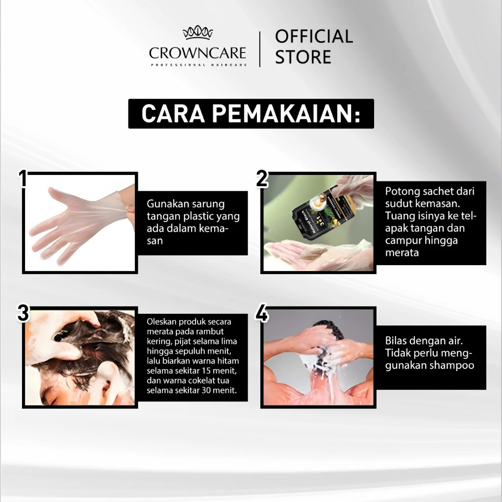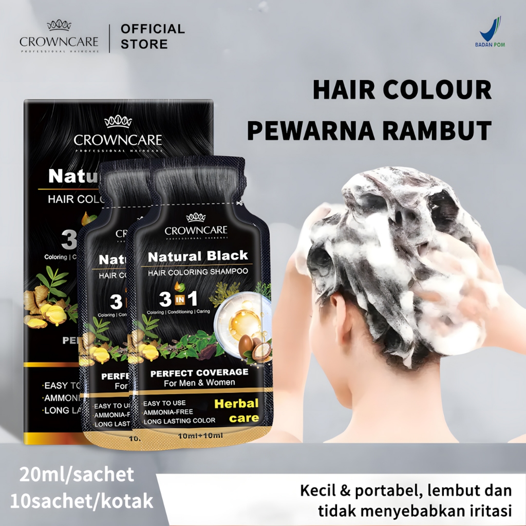 CrownCare Bubble Hair Color – Sampo Pewarna Rambut Alami Ukuran Kecil, Tanpa Amonia & SLS, Menghitamkan Uban Secara Alam