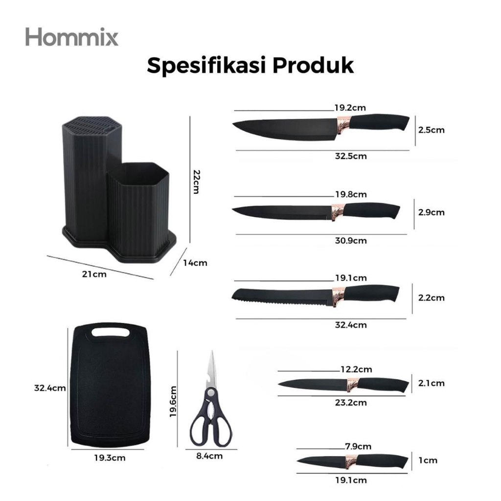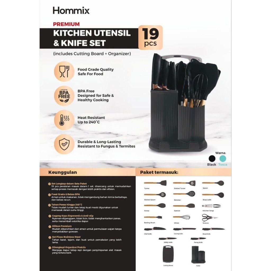 Hommix Premium Utensil & Knife Set | Peralatan Masak Spatula dan Pisau Set | 19 Pcs