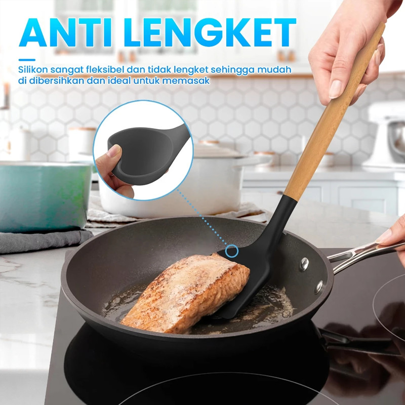 Spatula Silicone Tahan Panas Set of 6 / Peralatan Spatula Silikon Sutil Kitchen Set / Set Alat Dapur Silikon