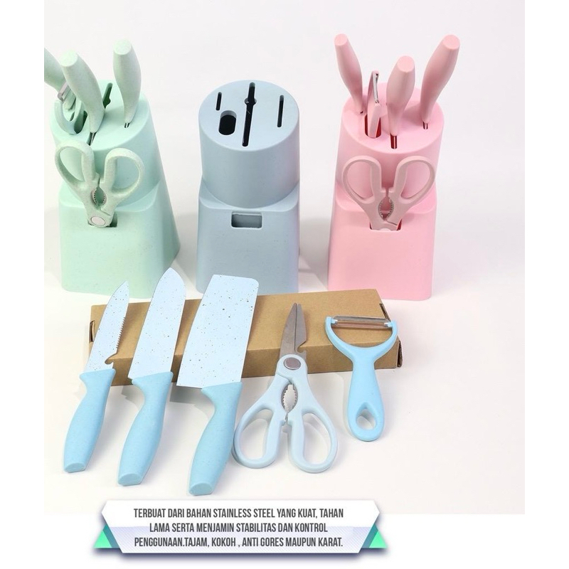 Pisau Set 5 in 1 Keramik/pisau set dapur/pisau potong+tempat pisau